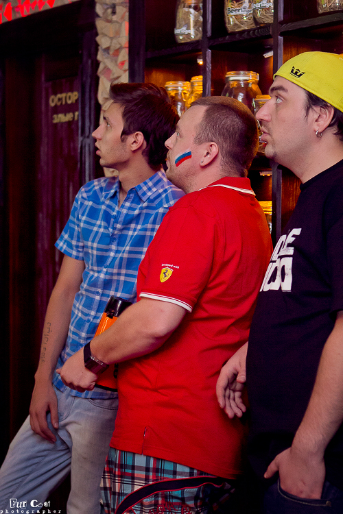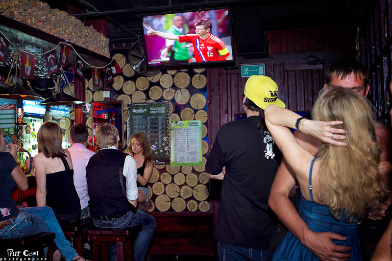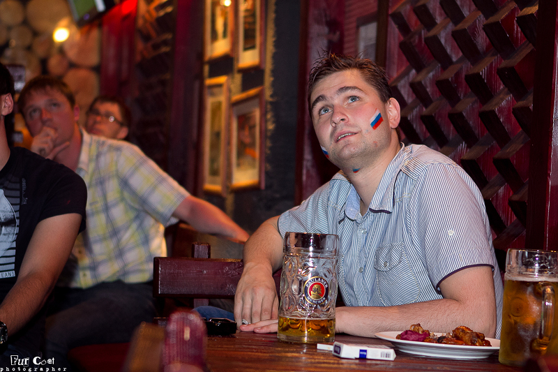 С 8 июня вся страна внимательно следила за матчами сборной России. Наш город не остался в стороне, многие заведения Иркутска проводили прямую трансляцию игр «Евро — 2012». Ярые футбольные болельщики собрались в клубе-ресторане Beerloga XL в ночь с 16 на 17 июня, где проводилась трансляция игры сборной России против сборной Греции. В глазах надежда, волнение и…. боль поражения.