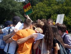 29 июля на набережной горожане стали свидетелями флешмоба Free hugs. Молодые люди с табличками «Обниму бесплатно», «Обними меня», «Обнимаю за улыбку» заключали в объятия прохожих.