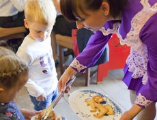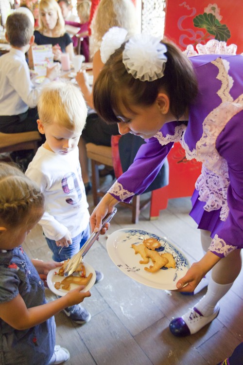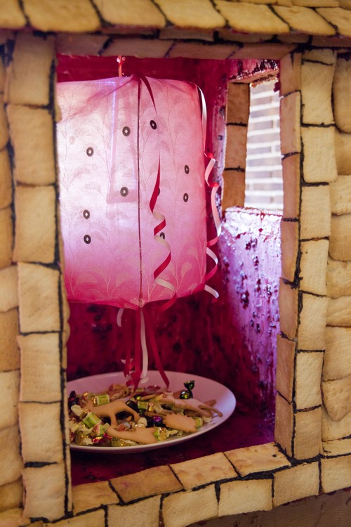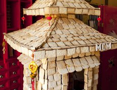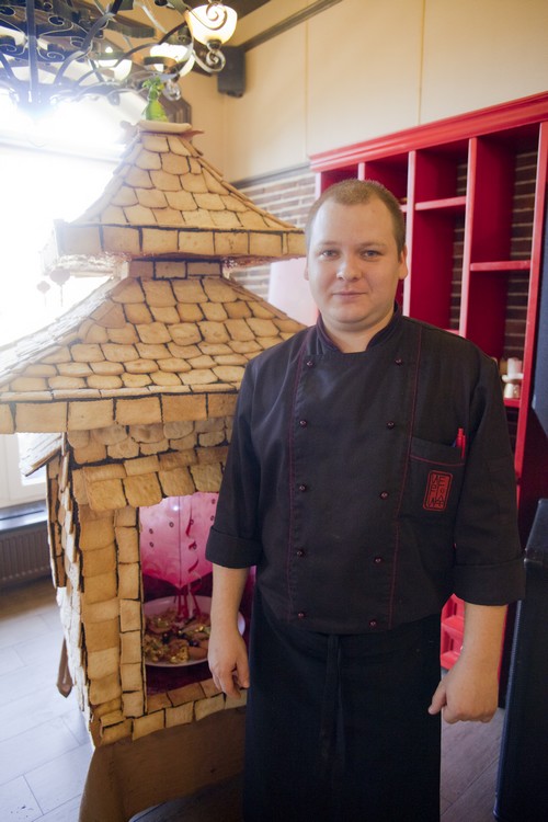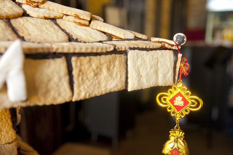 Идею с удовольствием поддержал шеф-повар ресторана Дмитрий Говорин. В результате был возведен домик из печенья высотой в 1 метр, с большими китайскими окнами и китайским фонарем внутри.