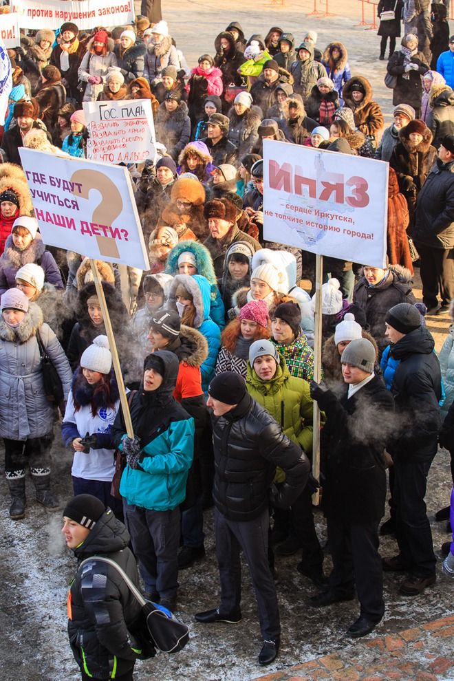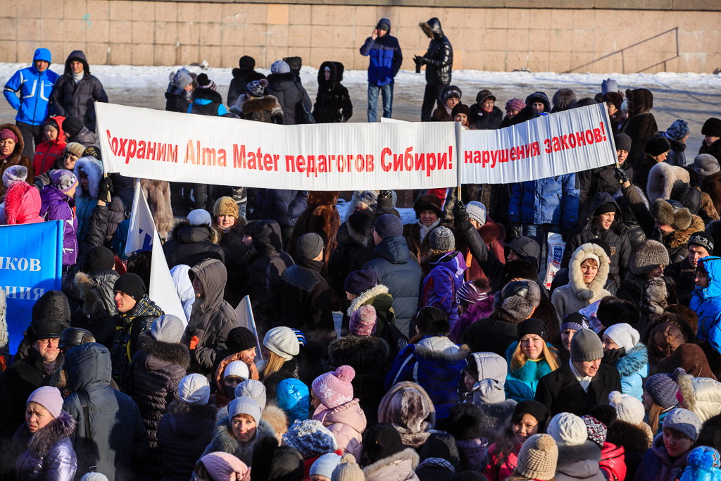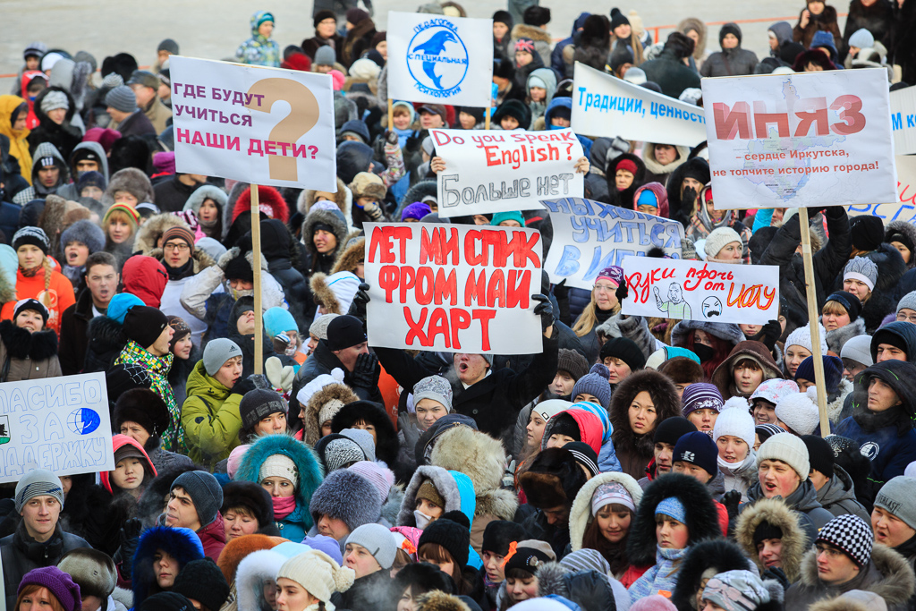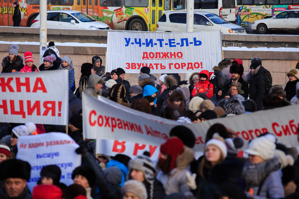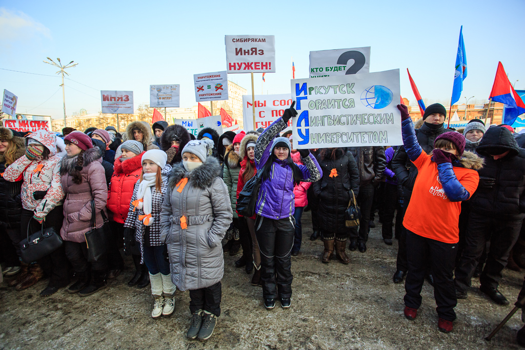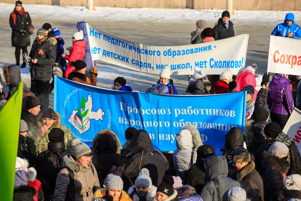 7 декабря на площади у стадиона «Труд» в Иркутске состоялся митинг студентов и преподавателей Иркутского государственного лингвистического университета (ИГЛУ) и Восточно-Сибирской государственной академии образования (ВСГАО). Они опасаются, что педагогический и лингвистический вузы подвергнутся реорганизации. В акции приняли участие около 1000 человек.