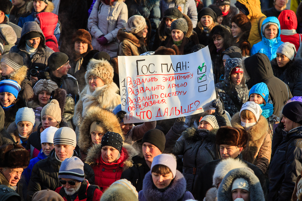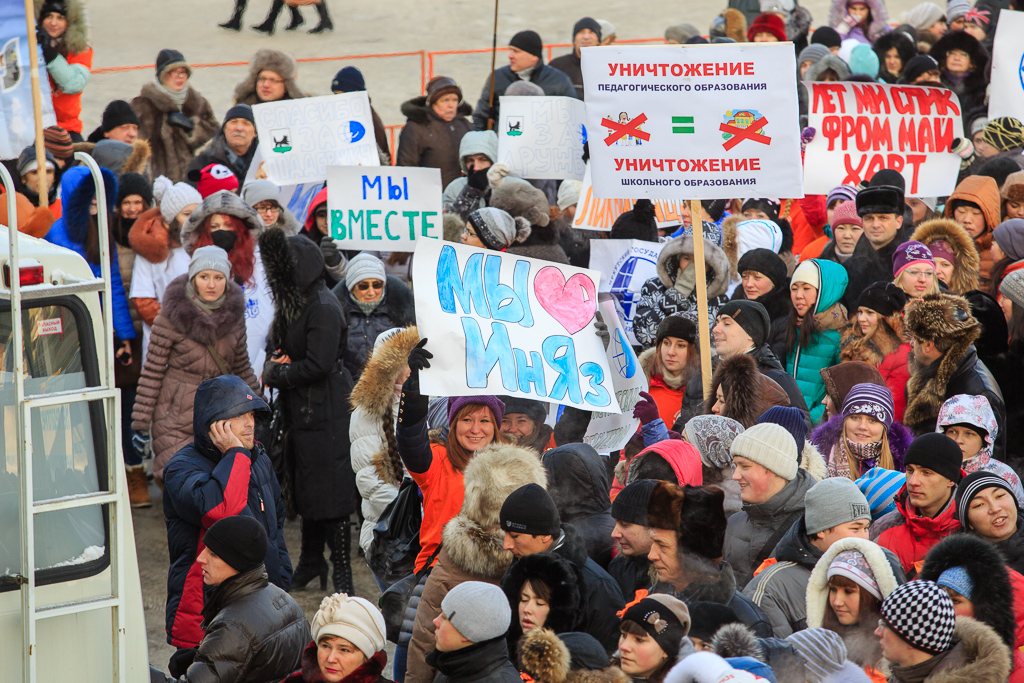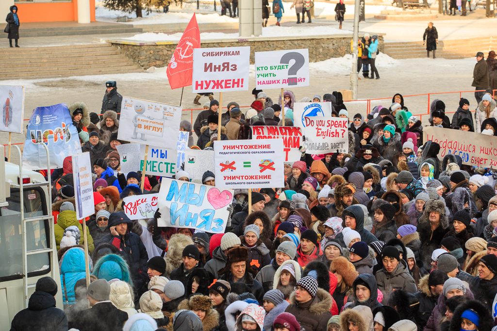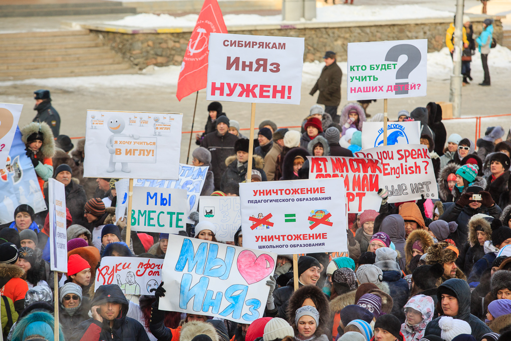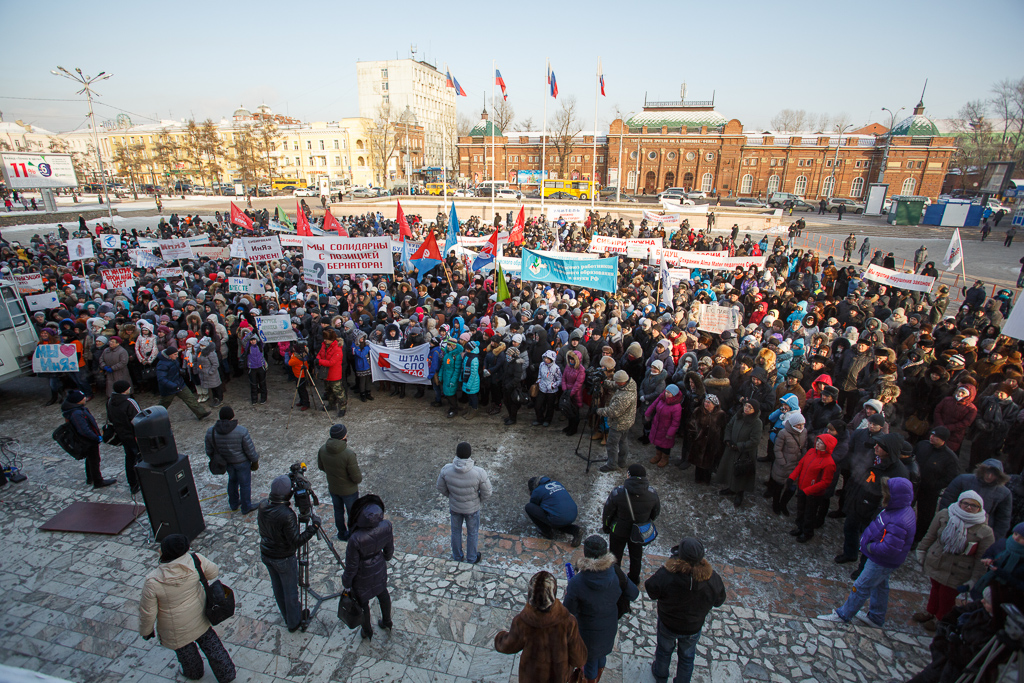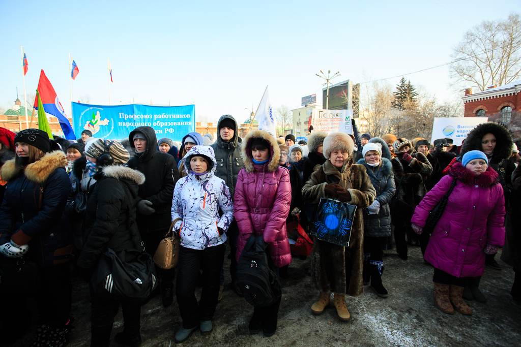 7 декабря на площади у стадиона «Труд» в Иркутске состоялся митинг студентов и преподавателей Иркутского государственного лингвистического университета (ИГЛУ) и Восточно-Сибирской государственной академии образования (ВСГАО). Они опасаются, что педагогический и лингвистический вузы подвергнутся реорганизации. В акции приняли участие около 1000 человек.
