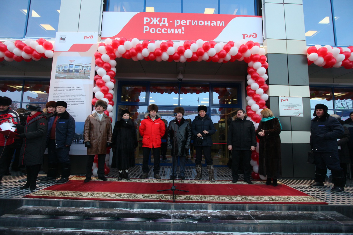 В рамках рабочей поездки губернатор Иркутской области Сергей Ерощенко принял участие в церемонии открытия нового транспортного комплекса «Падунские Пороги». В состав комплекса входит двухэтажный железнодорожный вокзал, гостевые номера, кафе, торговые павильоны, перроны для посадки и высадки пассажиров. Здесь планируется также открыть автовокзал. Общая стоимость проекта составляет около 400 миллионов рублей.