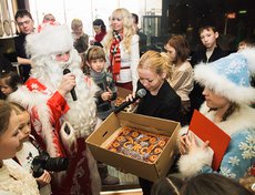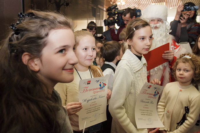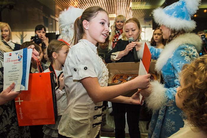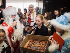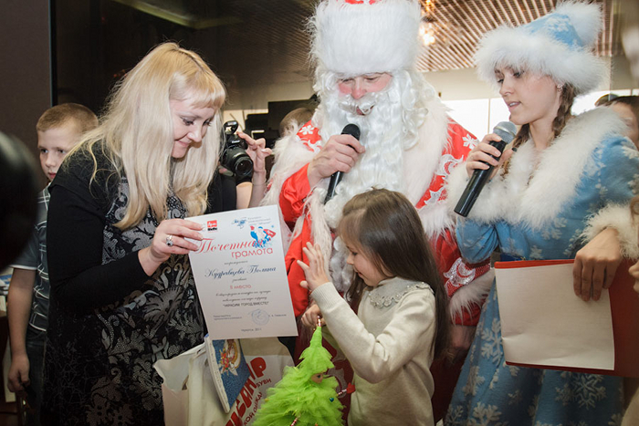 Торжественное вручение подарков состоялось на новогоднем празднике в кинотеатре «Звездный» 25 декабря. На этом празднике ребята за лучшие игрушки получили массу подарков и призы от партнеров конкурса: