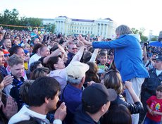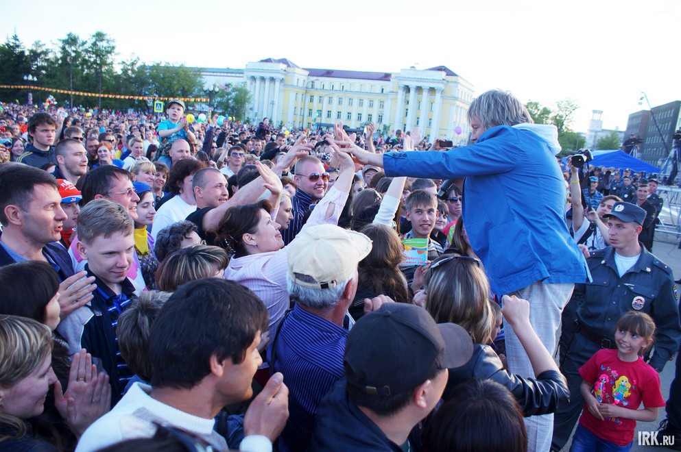 1 июня иркутяне праздновали День города, День защиты детей и наступление долгожданного лета. Начались мероприятия утром. В 11:00 на стадионе «Локомотив» состоялся товарищеский матч между сборной Иркутска и командой «Артист», в которую вошли популярные певцы и музыканты — Вадим Казаченко, Владимир Пресняков старший, Юрий Лоза и другие, а также прославленные российские футболисты. Матч завершился вничью — 5:5.
