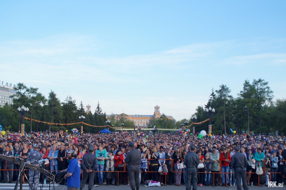 Вечером горожан ждал концерт. Иркутян поздравили местные исполнители, а также музыканты команды «Артист». Завершился концерт праздничным салютом.