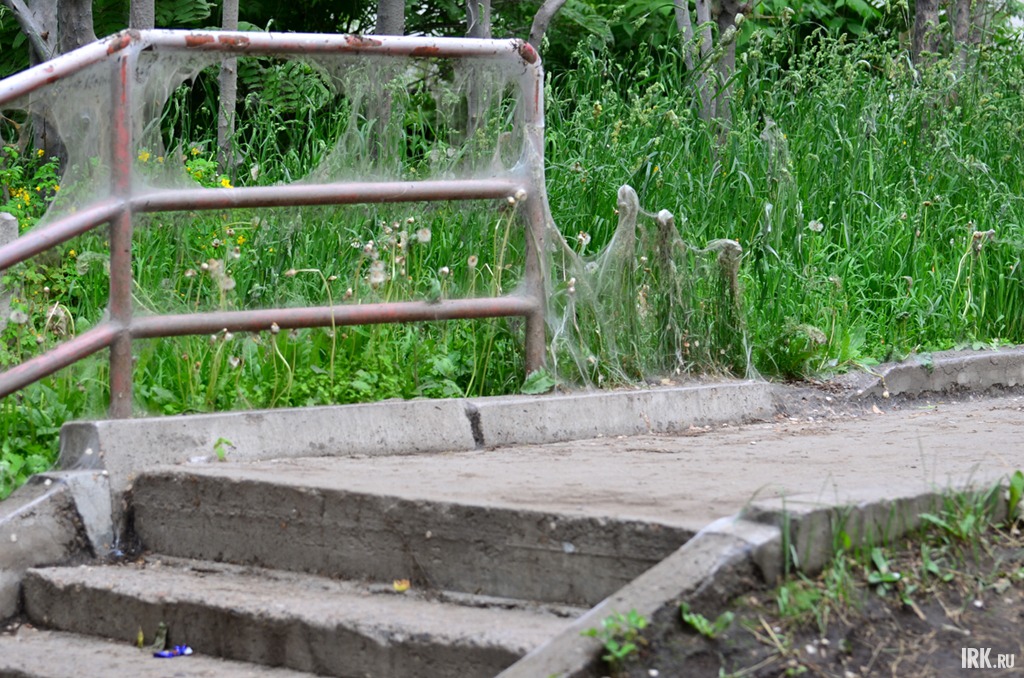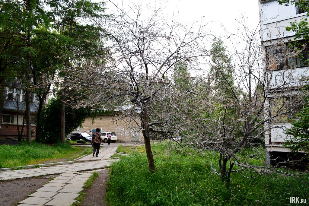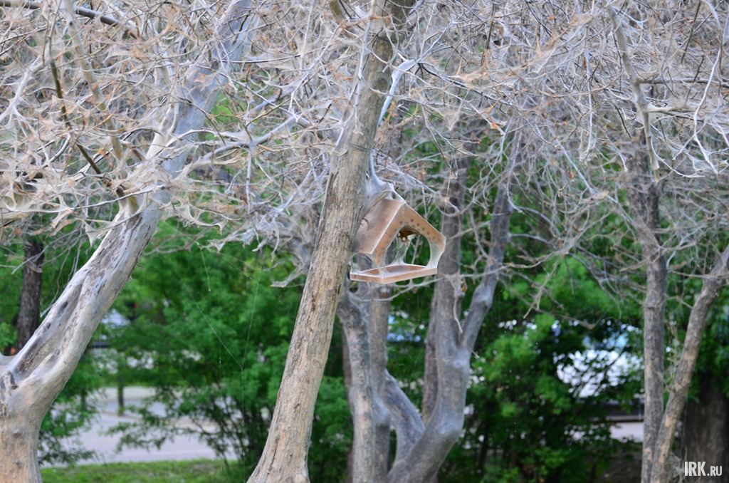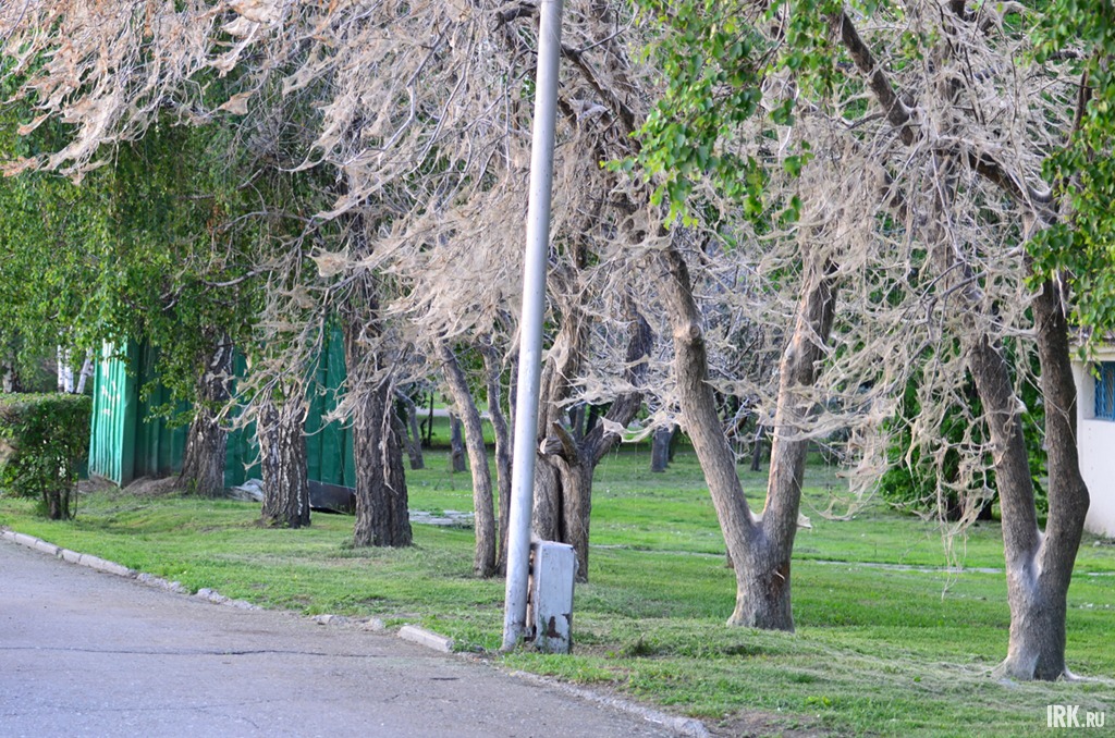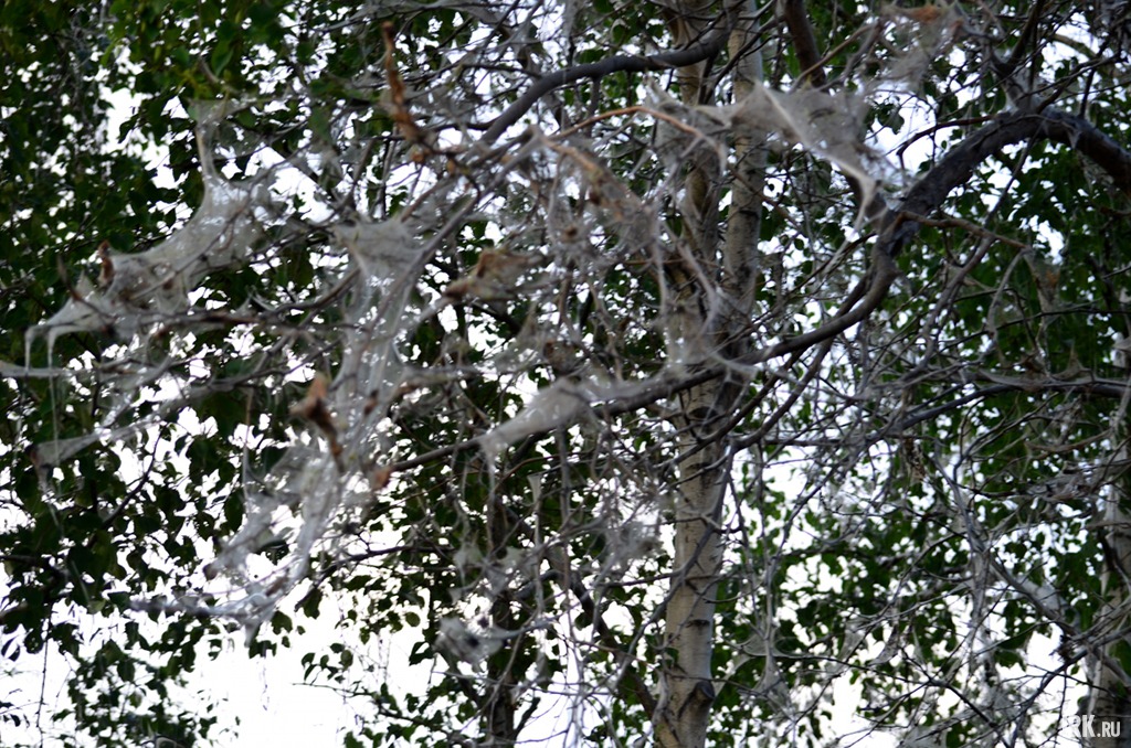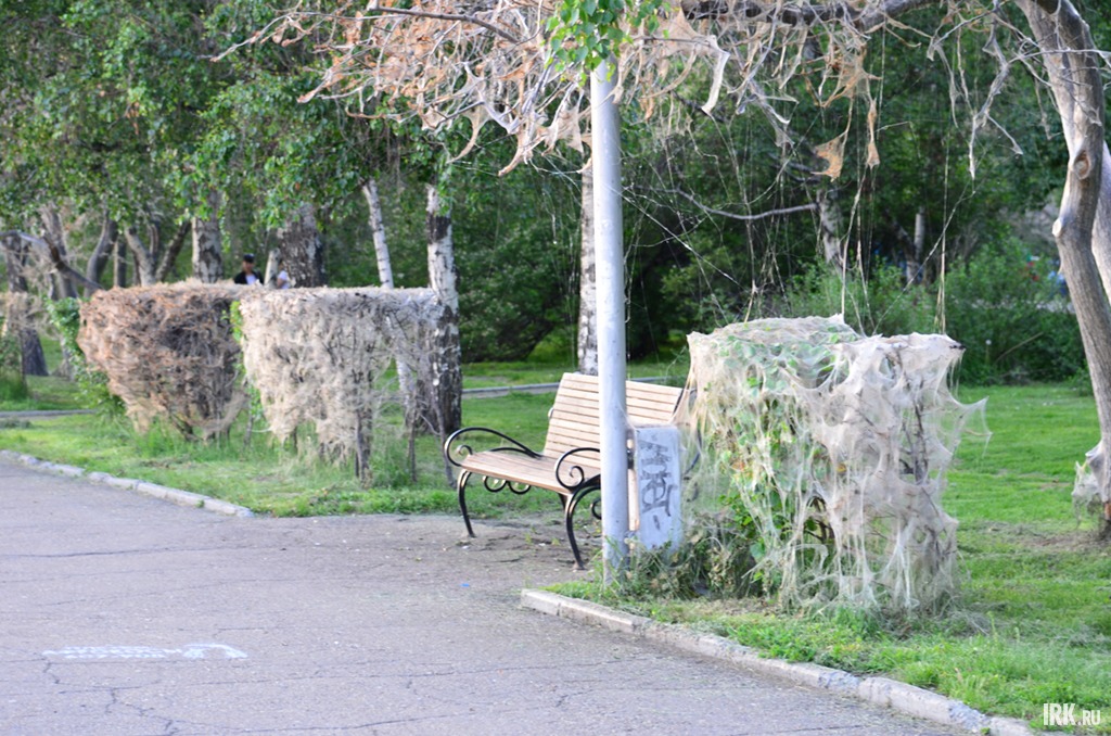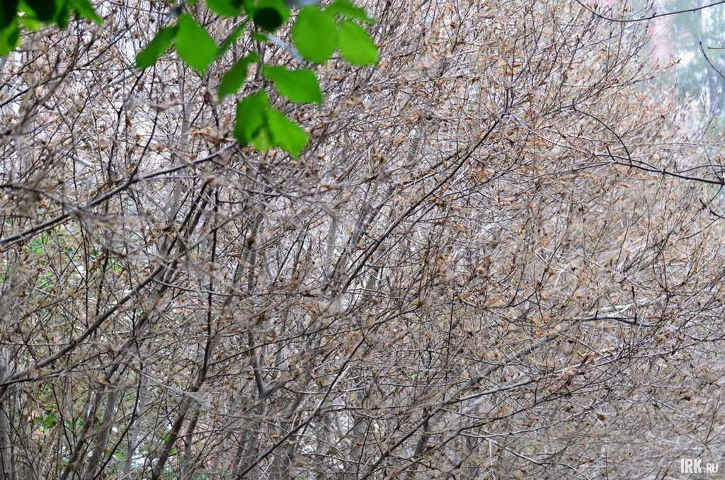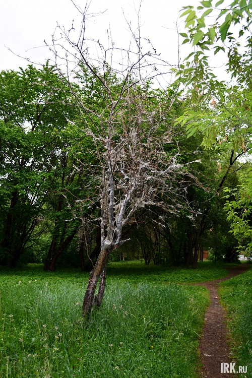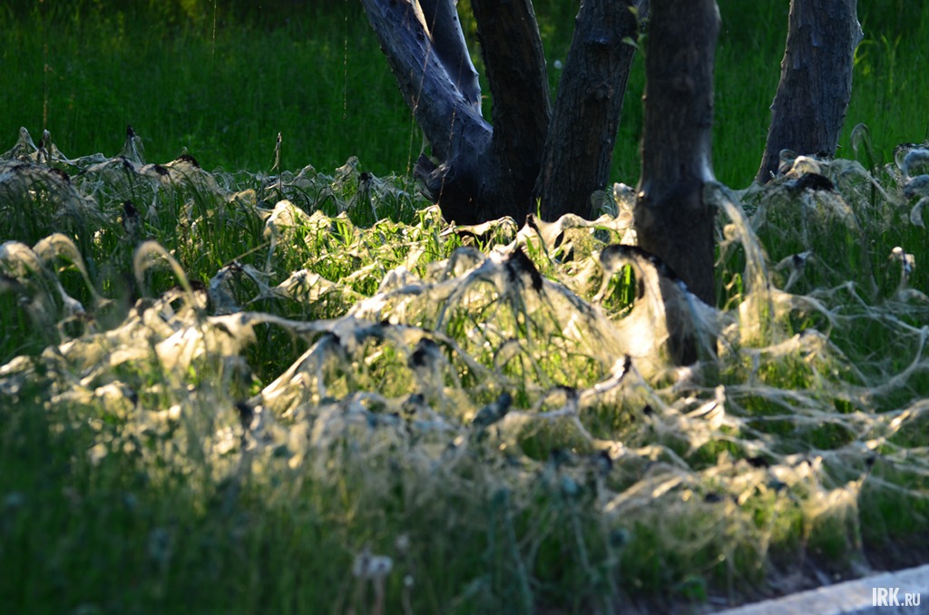 Этим летом яблони Иркутска снова страдают от нашествия горностаевой моли. Декоративные деревья на улицах и во дворах города окутала паутина, в которой копошатся мерзкого вида гусеницы.