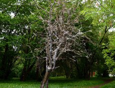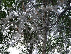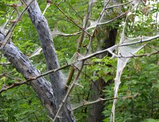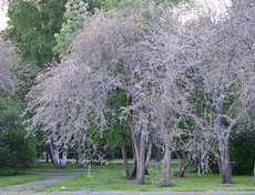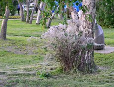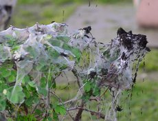 Этим летом яблони Иркутска снова страдают от нашествия горностаевой моли. Декоративные деревья на улицах и во дворах города окутала паутина, в которой копошатся мерзкого вида гусеницы.