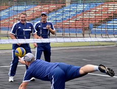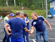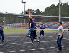 Тем временем на волейбольной площадке команда спортивных журналистов противостояла сборной тренерского штаба и администрации «Байкал-Энергии». Журналисты уступили в двух партиях, хотя какое-то время и вели в счете.