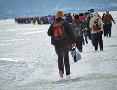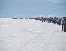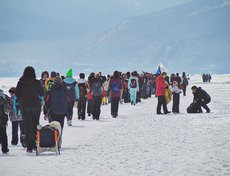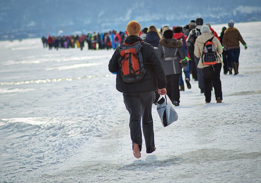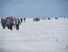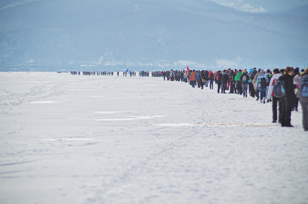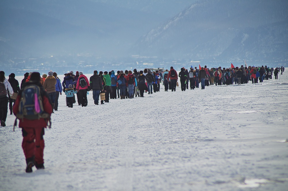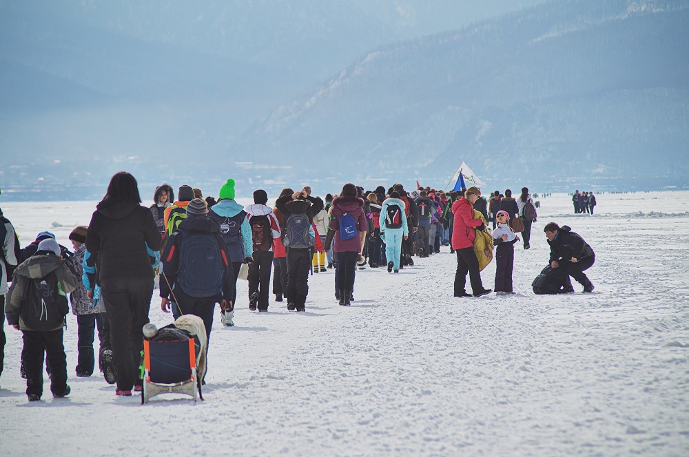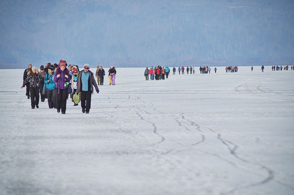 В переходе по маршруту Старая Ангасолка — Слюдянка приняли участие более тысячи человек. По подсчетам организаторов, каждый участник сделал около 25,5 тысяч шагов по льду озера.