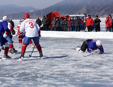 К сожалению, игра проходила в закрытом режиме, практически без зрителей, так как из-за теплой зимы лед на Байкале, в том числе в районе Листвянки, недостаточно прочный, чтобы размещать на нем большое количество человек.