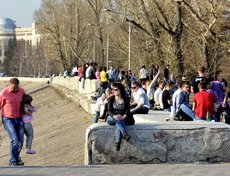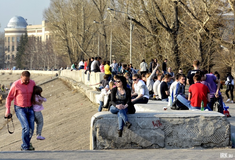 Весна в Иркутске в этом году наступила рано. В субботу погода была аномально теплой. Днем столбик термометра поднимался до +24 градусов. Горожане обрадовались такому подарку природы и отправились гулять. Наш фотограф прогулялся вместе с ними.