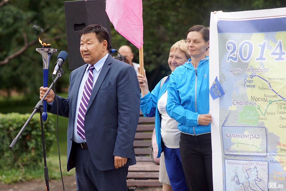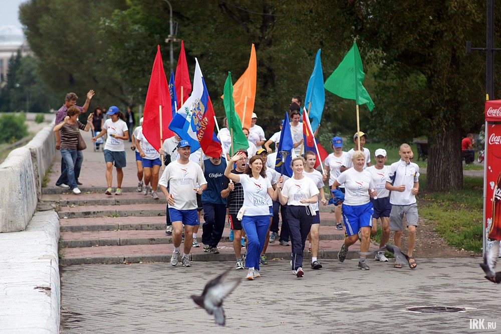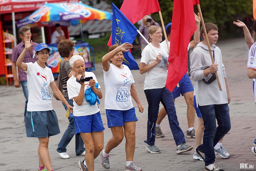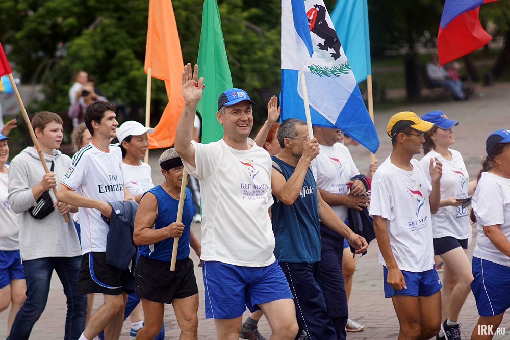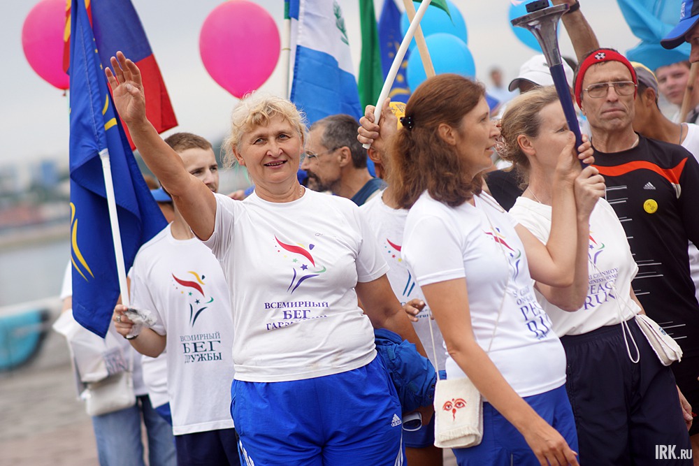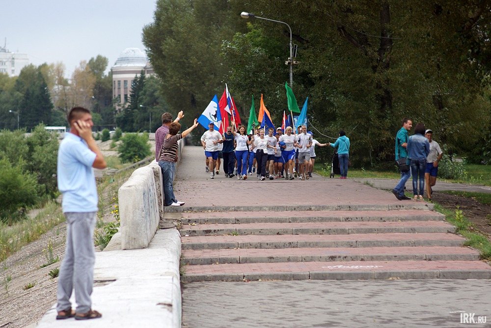 25 июля на набережной, у памятника Александру Третьему, встречали команду бегунов факельной эстафеты «Бег Мира». В Иркутск прибыло более 30 участников «Восточной» ветки эстафеты из Москвы, Смоленска, Ижевска, Ставрополя, Чебоксар, Кемерово, Красноярска, Иркутска, Шелехова, Читы, а также Монголии и Латвии.