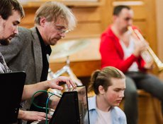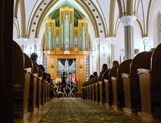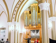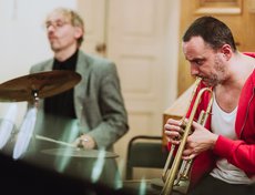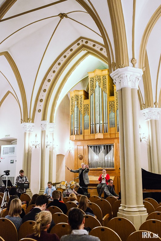 27 октября в органном зале состоялся концерт Евгения и Анастасии Маслобоевых — иркутского дуэта, чье музыкальное творчество живет в пространстве свободных звуковых эмоций и включает в себя традиции фольклора, авангарда и фри-джаза. Концерт состоялся при участии швейцарского трубача Янника Бармана.