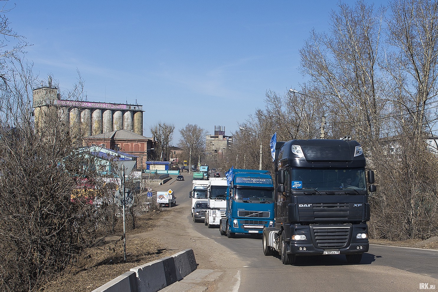 Днем 1 апреля десять большегрузов проехали по Иркутску с символикой «Антиплатон». Автомобили двигались по улицам Трактовая, Лермонтова, Старокузмихинская, плотине ГЭС, Ширямова, Баррикад и сигналили.