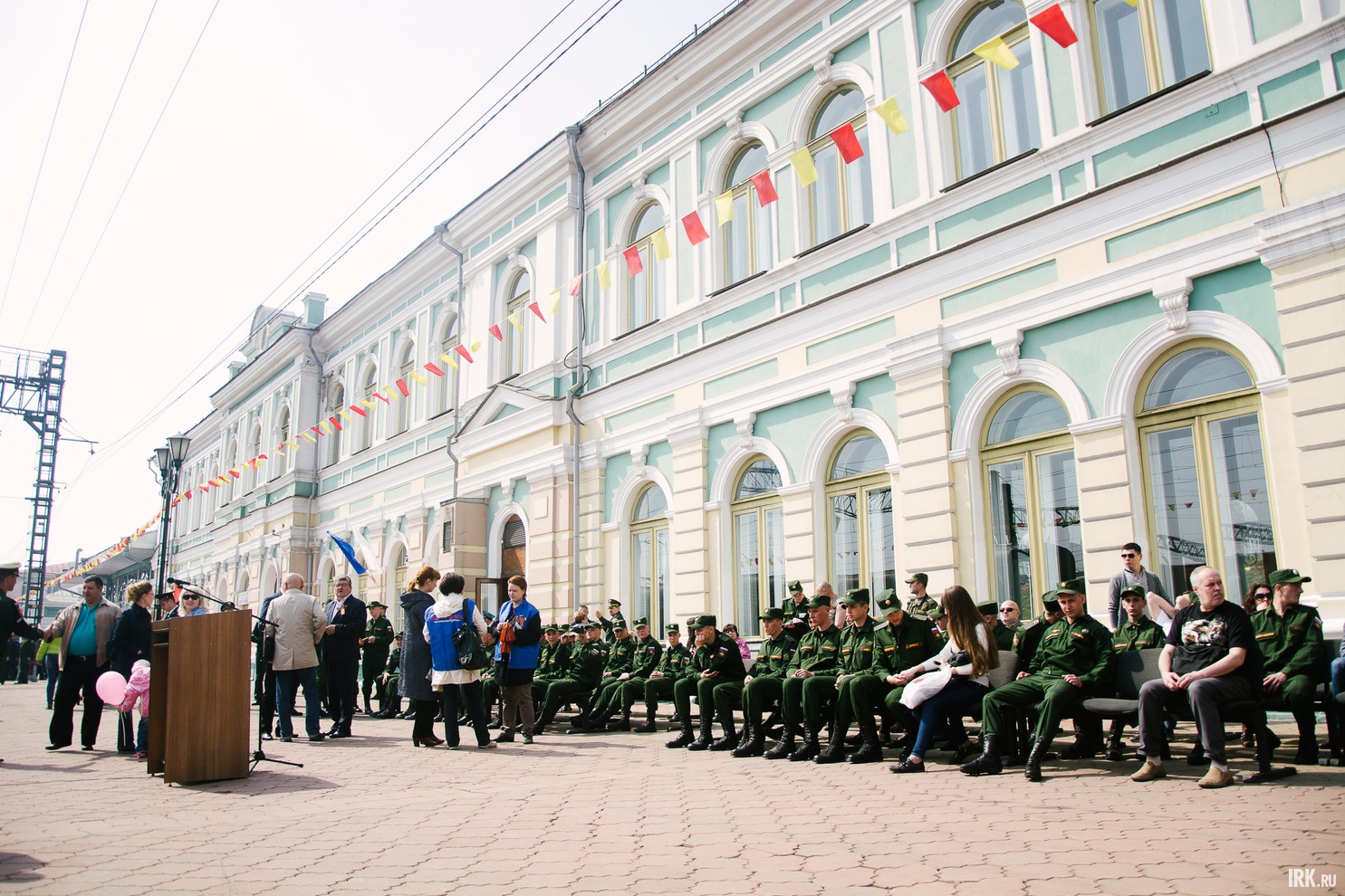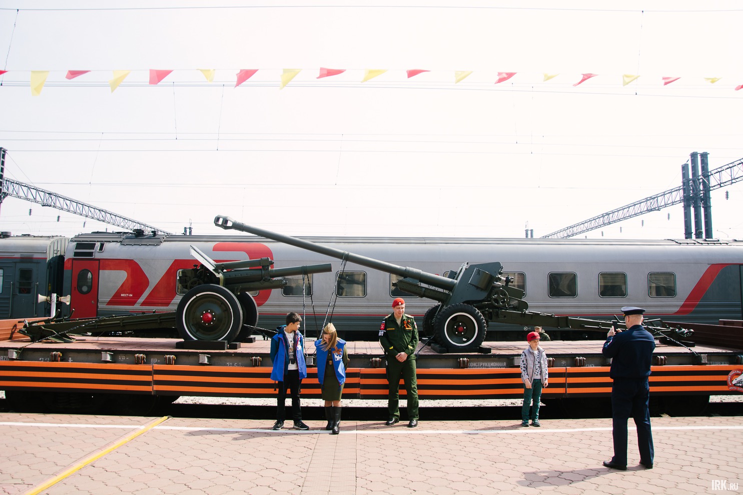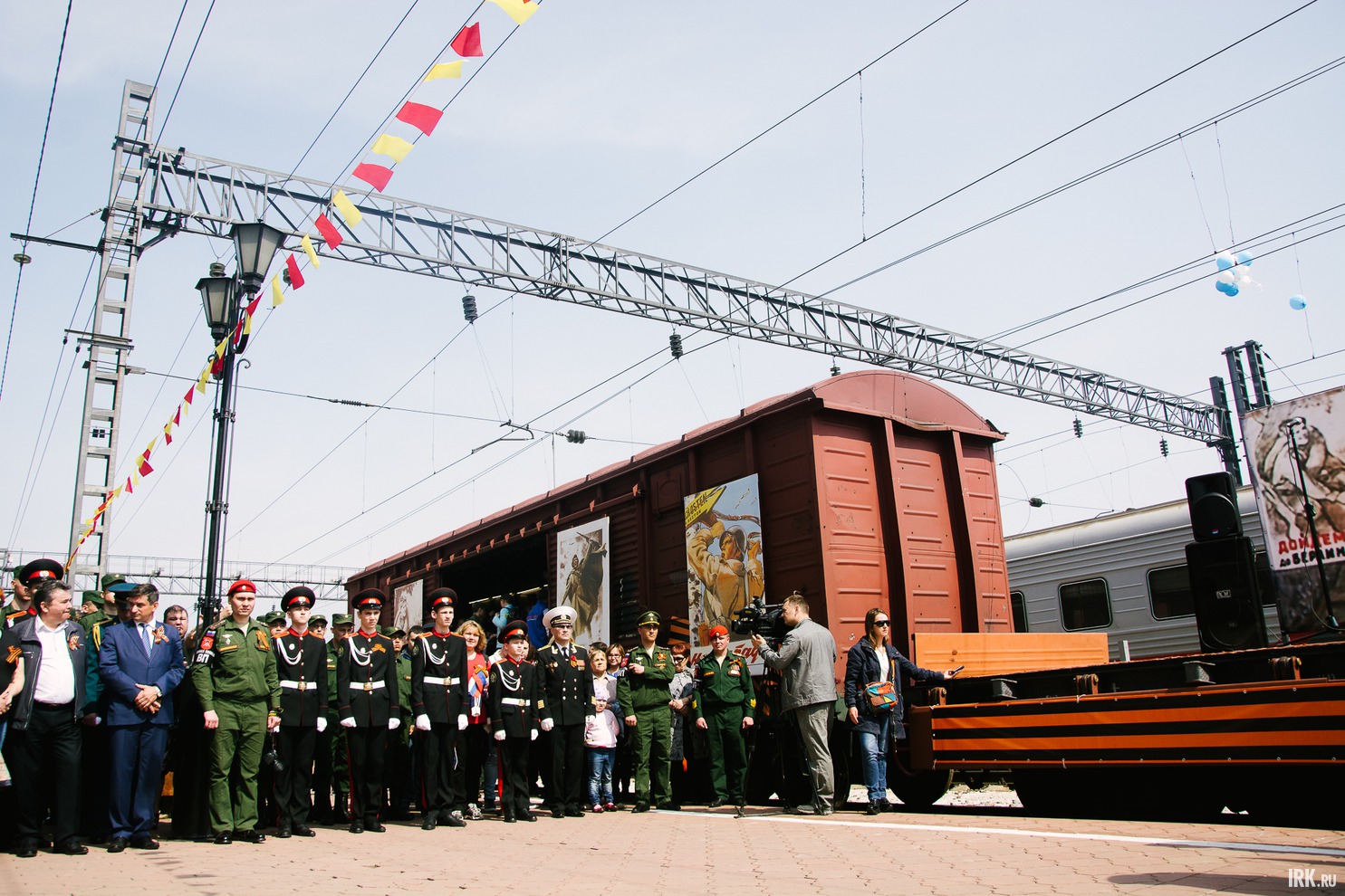 На платформе «Иркутск-Пассажирский» состоялся торжественный митинг ветеранов Великой Отечественной войны, служащих военного гарнизона, кадетов, юноармейцев, концерт бригады агитпоезда и ВИА «Порт Артур». Все желающие смогли увидеть образцы техники и вооружения 1941-1945 годов, экспозицию передвижного музея. Также на платформе работал пункт приема на военную службу по контракту. В мероприятии участвовали губернатор региона Сергей Левченко, председатель Заксобрания Сергей Брилка, мэр Иркутска Дмитрий Бердников, председатель городской общественной организации ветеранов войны (труда), ВС и правоохранительных органов Владимир Баранов.
