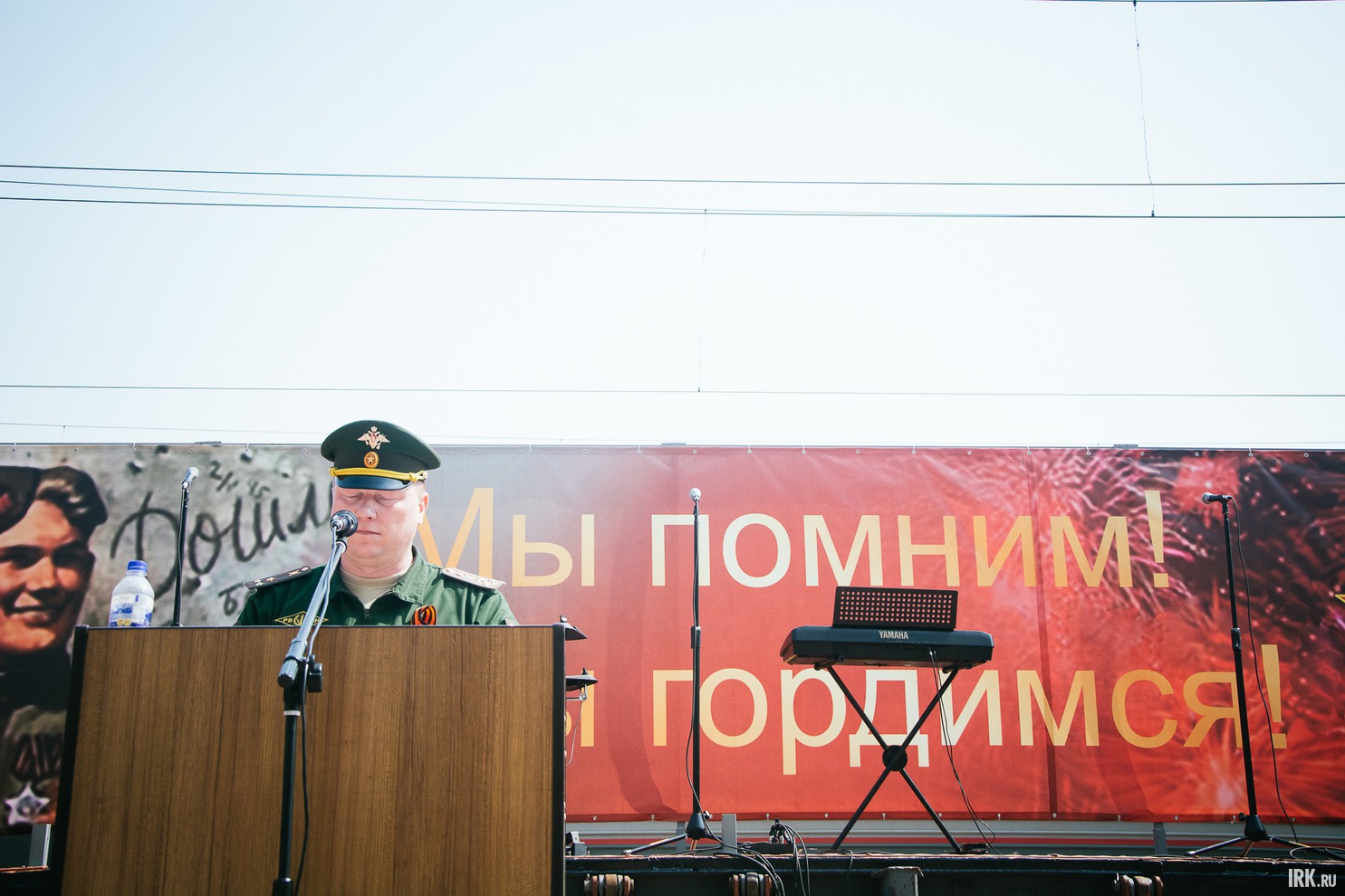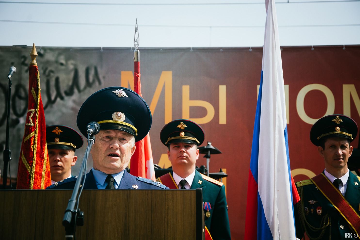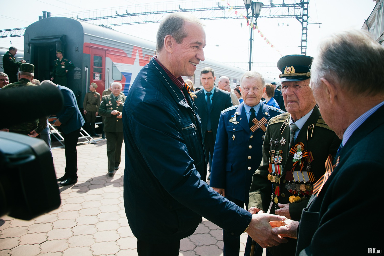 На платформе «Иркутск-Пассажирский» состоялся торжественный митинг ветеранов Великой Отечественной войны, служащих военного гарнизона, кадетов, юноармейцев, концерт бригады агитпоезда и ВИА «Порт Артур». Все желающие смогли увидеть образцы техники и вооружения 1941-1945 годов, экспозицию передвижного музея. Также на платформе работал пункт приема на военную службу по контракту. В мероприятии участвовали губернатор региона Сергей Левченко, председатель Заксобрания Сергей Брилка, мэр Иркутска Дмитрий Бердников, председатель городской общественной организации ветеранов войны (труда), ВС и правоохранительных органов Владимир Баранов.