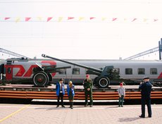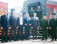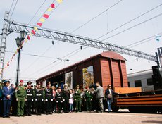 30 апреля на иркутском железнодорожном вокзале торжественно проводили агитпоезд «Армия Победы». Воинский эшелон из 12 вагонов с техникой, платформой для артистов будет следовать до Екатеринбурга с остановками в Красноярске, Юрге, Новосибирске, Омске и Тюмени.