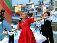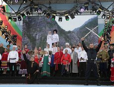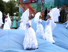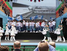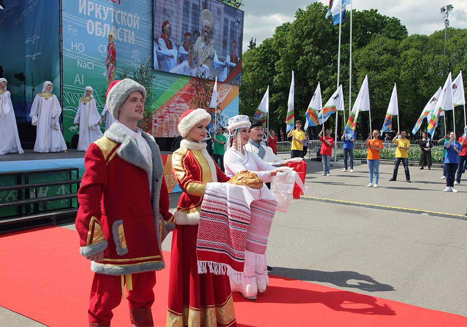 В 12:00 у главного фонтана парка начался концерт. В Москву прибыло 320 артистов из Иркутской области. Завершили праздник школа современной хореографии «Шаги», студенты Иркутского областного колледжа культуры и команда КВН «Раисы».