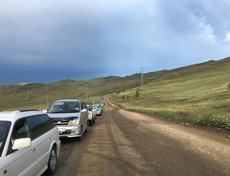 Очередь на паром с острова Ольхон