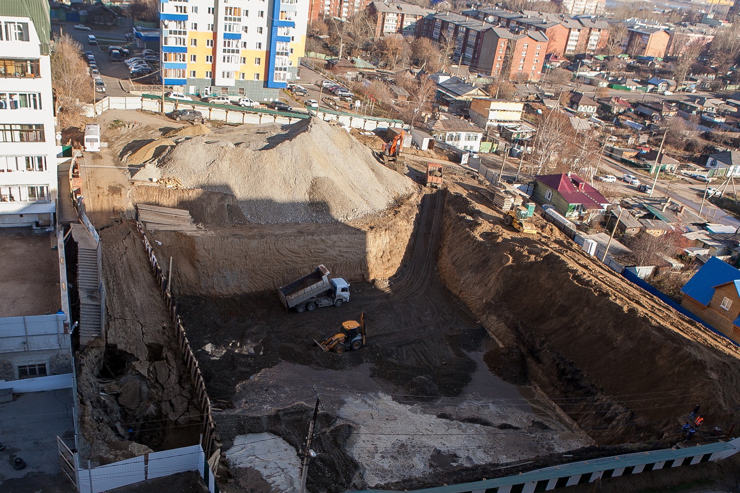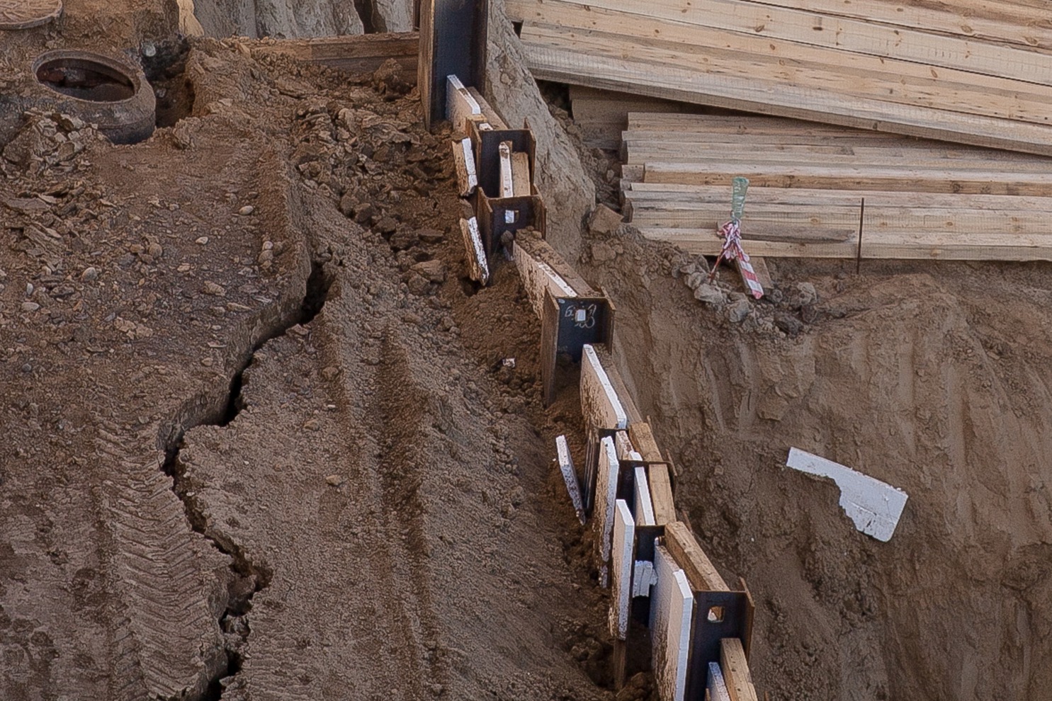 Последствия обрушения грунта в котловане на 4-й Железнодорожной