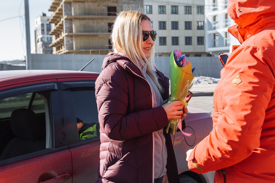 В Иркутске сотрудники ГИБДД поздравили женщин с 8 марта