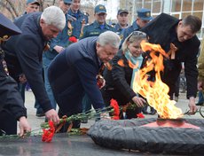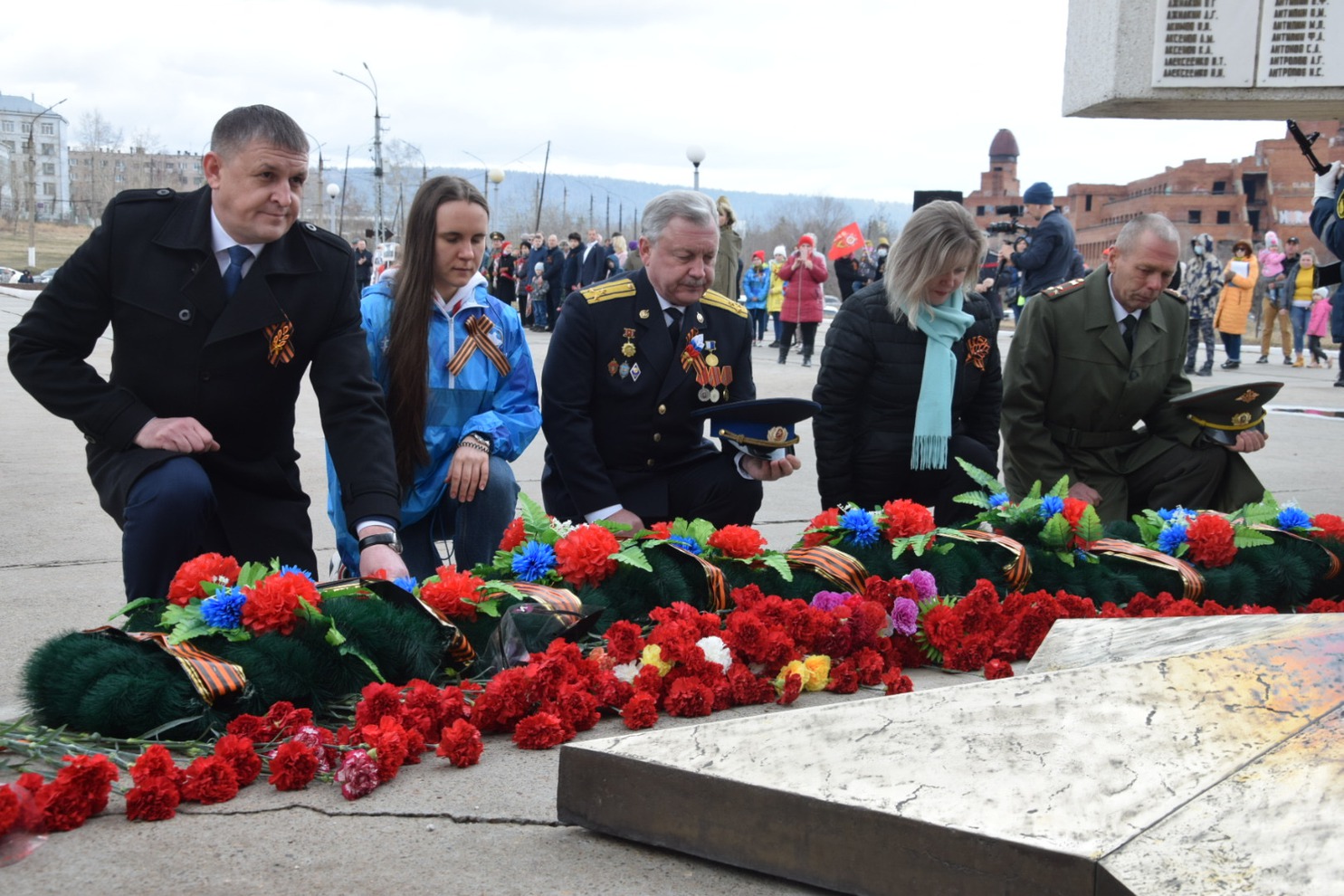 Возложение цветов состоялось возле памятников Героям Советского Союза. Ветераны войны, труженики тыла, малолетние узники концлагерей, дети блокадного Ленинграда, участники боевых действий в Афганистане, а также ветераны-первостроители Братска посетили памятники Героям Советского Союза: Анатолию Шаманскому, Михаилу Баркову, Георгию Жукову, а также Мемориал Славы.
