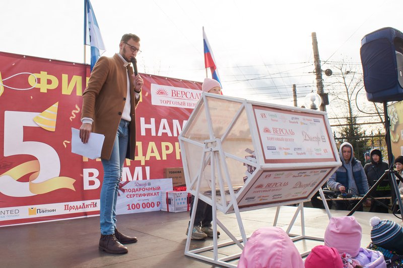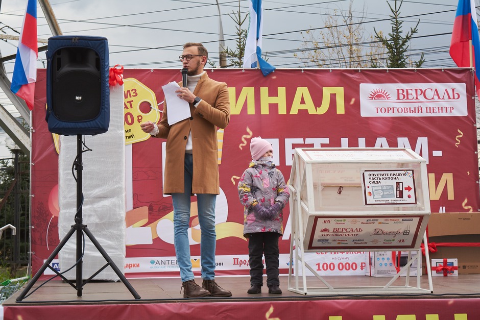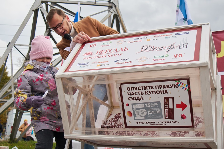 2 октября 2022 года на парковке торгового центра «Версаль» состоялся праздник в честь его 15-летия. На праздник собрались покупатели «Версаля», чтобы выиграть подарки. Чтобы принять участие в розыгрыше, нужно было с 1 августа по 1 октября 2022 года совершить покупку в торговом центре от 3000 рублей*.