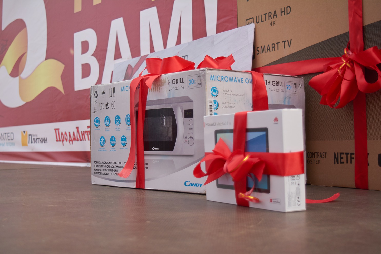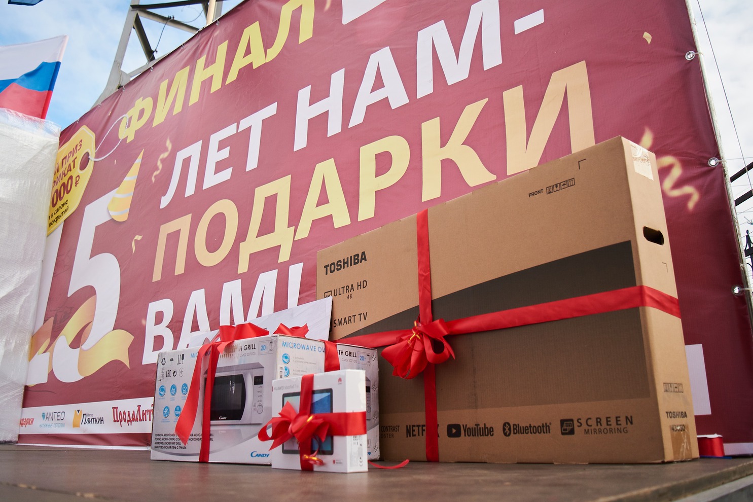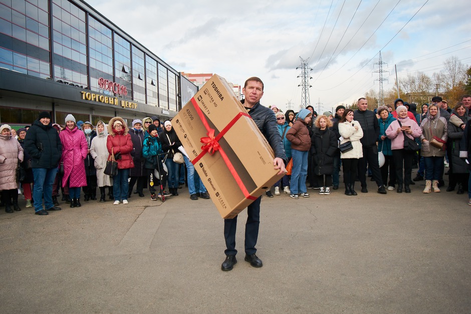 Подарки получили 24 счастливчика. Среди них бытовую технику — холодильник Haier, телевизор Toshiba, микроволновую печь Candy**, планшет Huawei, а также сертификаты от партнёров и арендаторов торгового центра «Версаль»: