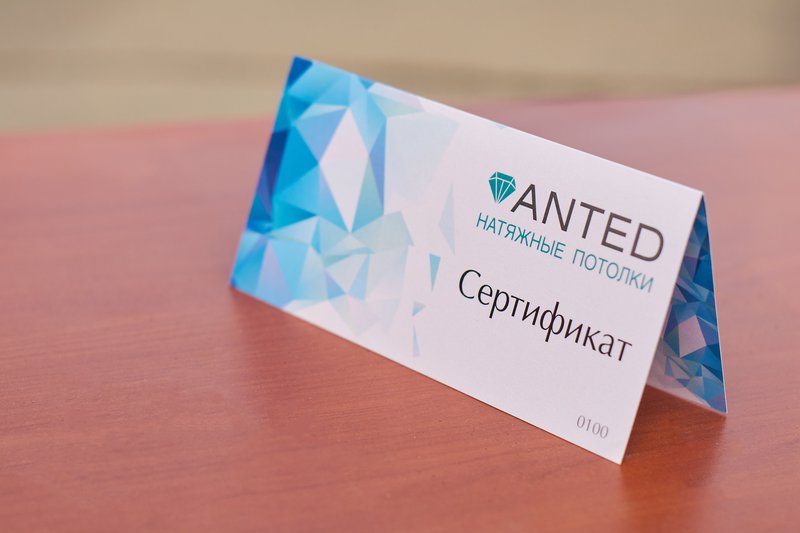— Сертификат на 10000 рублей от салона натяжных потолков «Антэд»;
