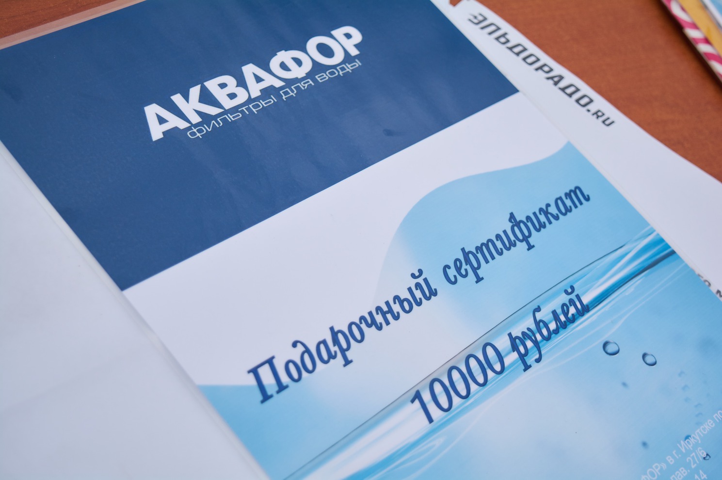 — Сертификат на 10000 рублей от магазина «Аквафор»;