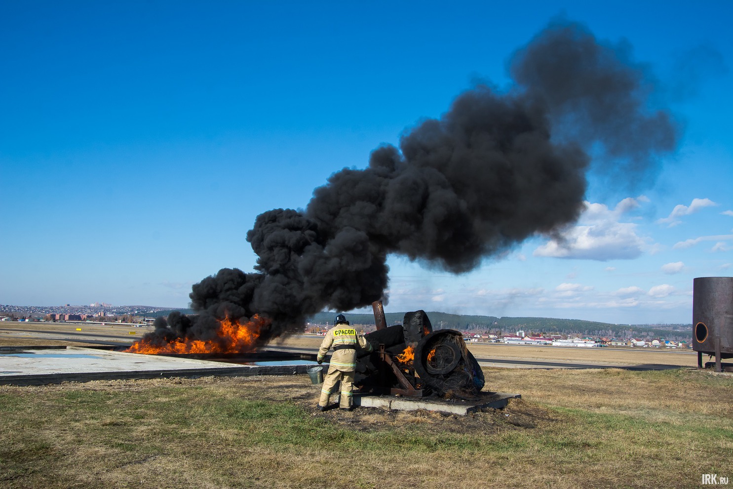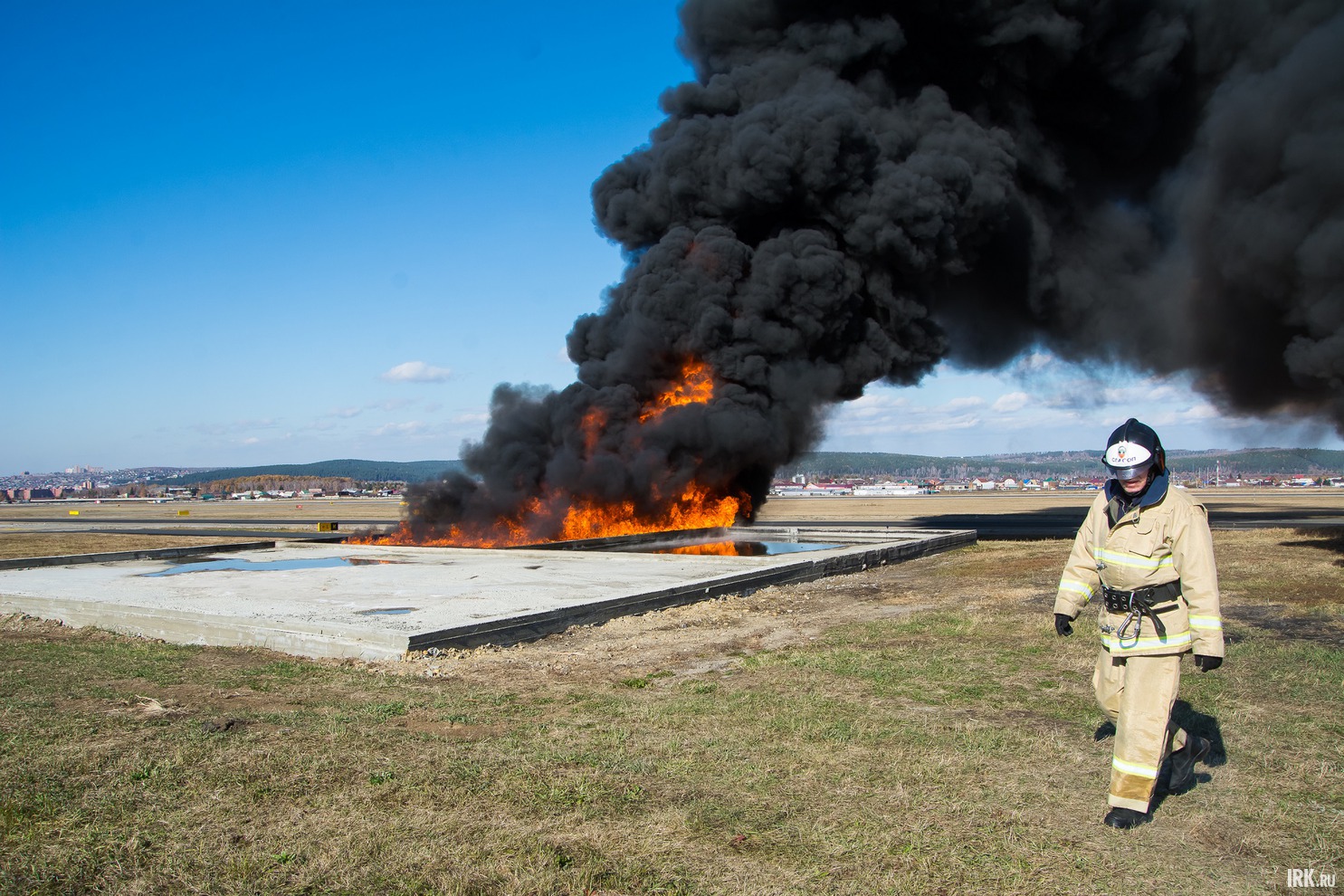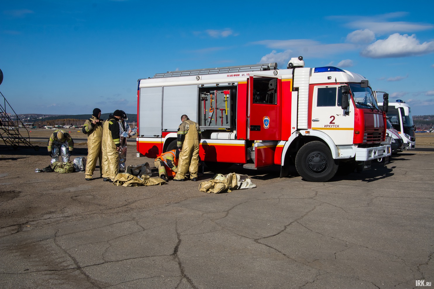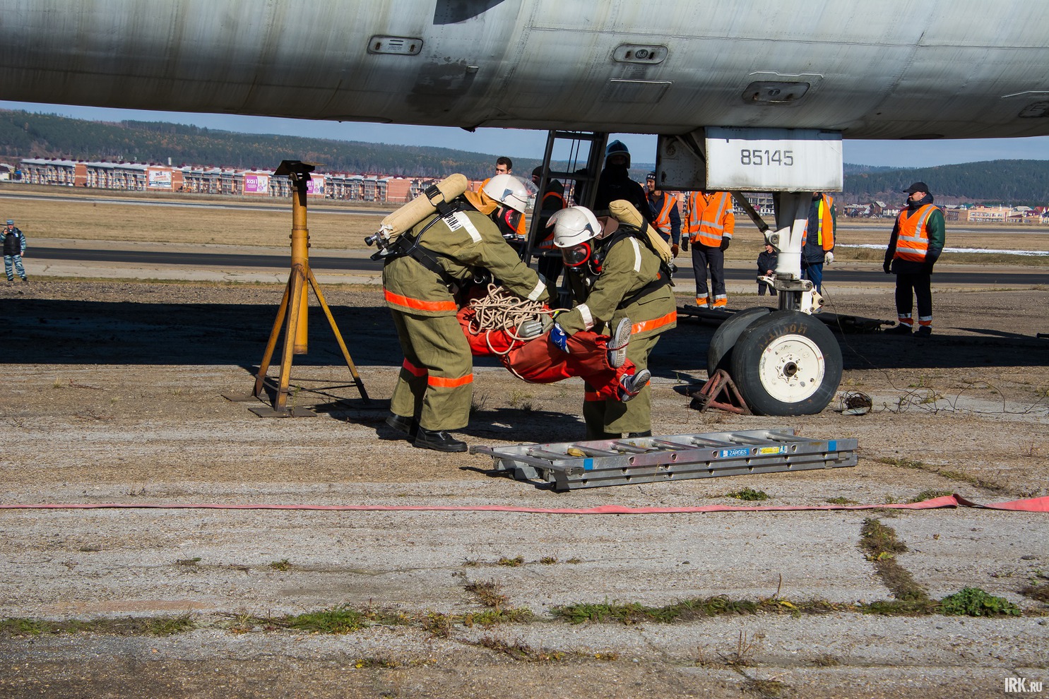 5 октября в международном аэропорту Иркутска прошли пожарно-тактические учения по ликвидации условного пожара на авиатранспорте. По легенде в результате аварийной посадки самолета оторвались шасси и загорелся двигатель. Также пламя охватило разлившееся авиационное топливо. Пострадавшие, роли которых исполнили статисты и манекены, не могли самостоятельно покинуть воздушное судно.
