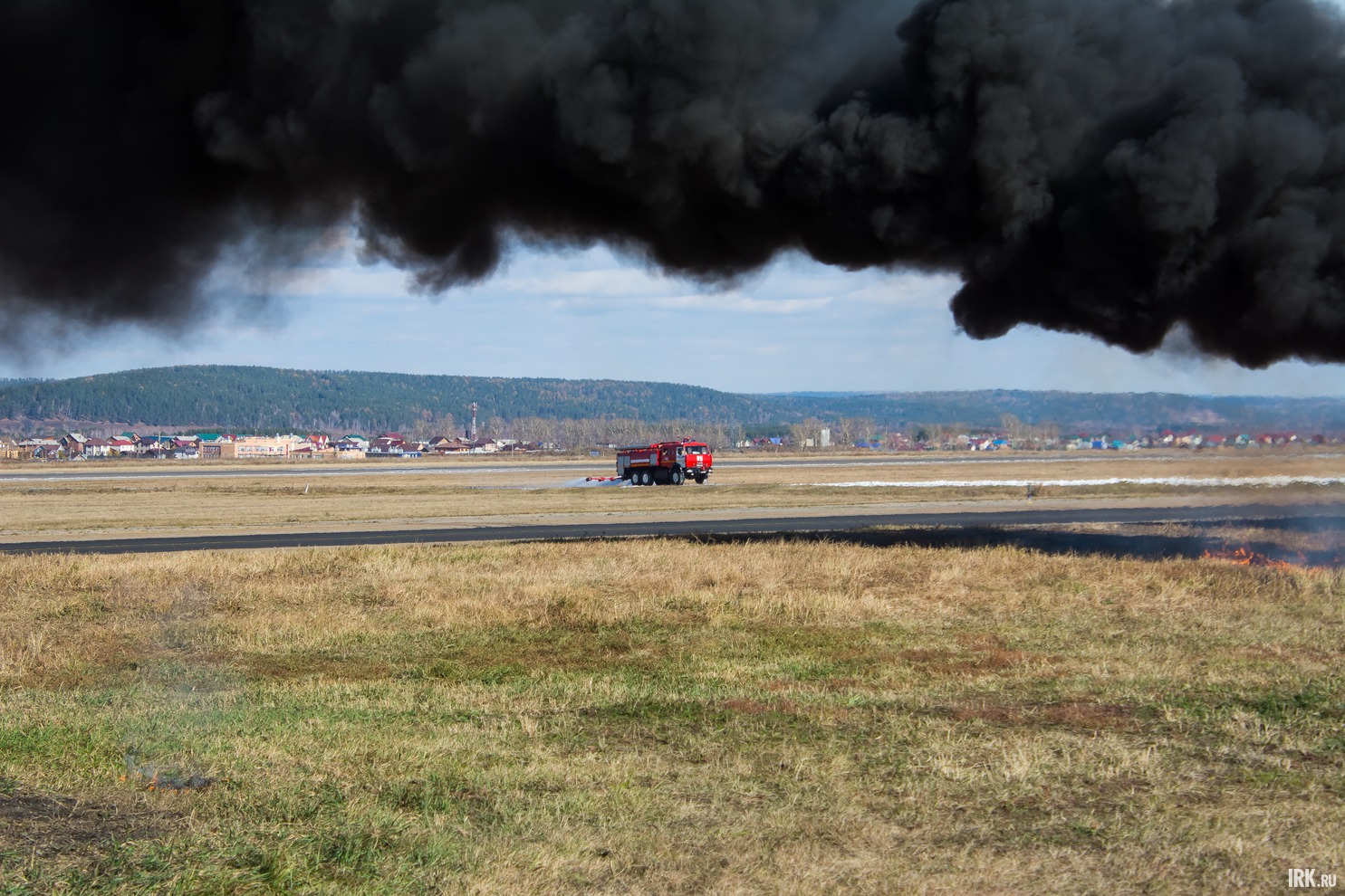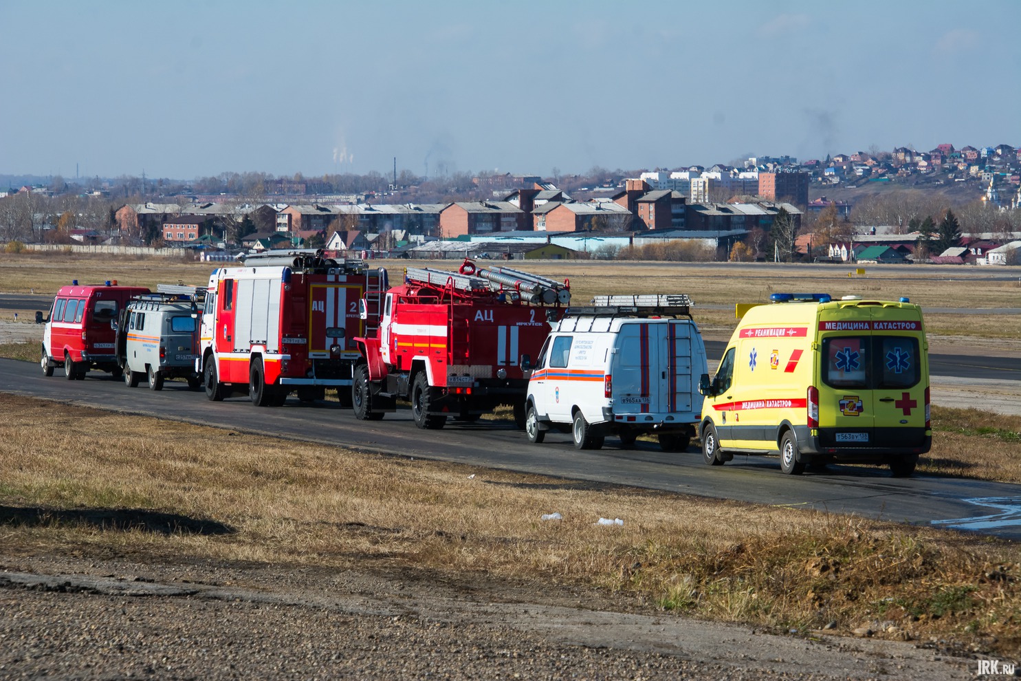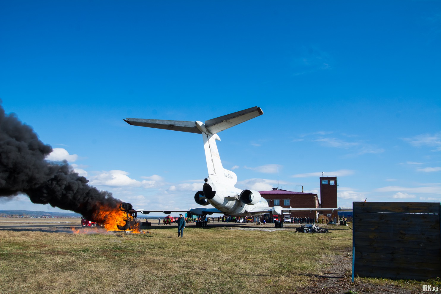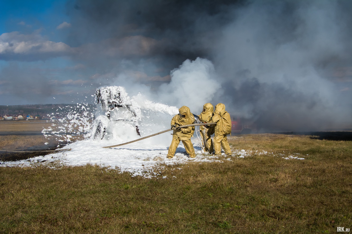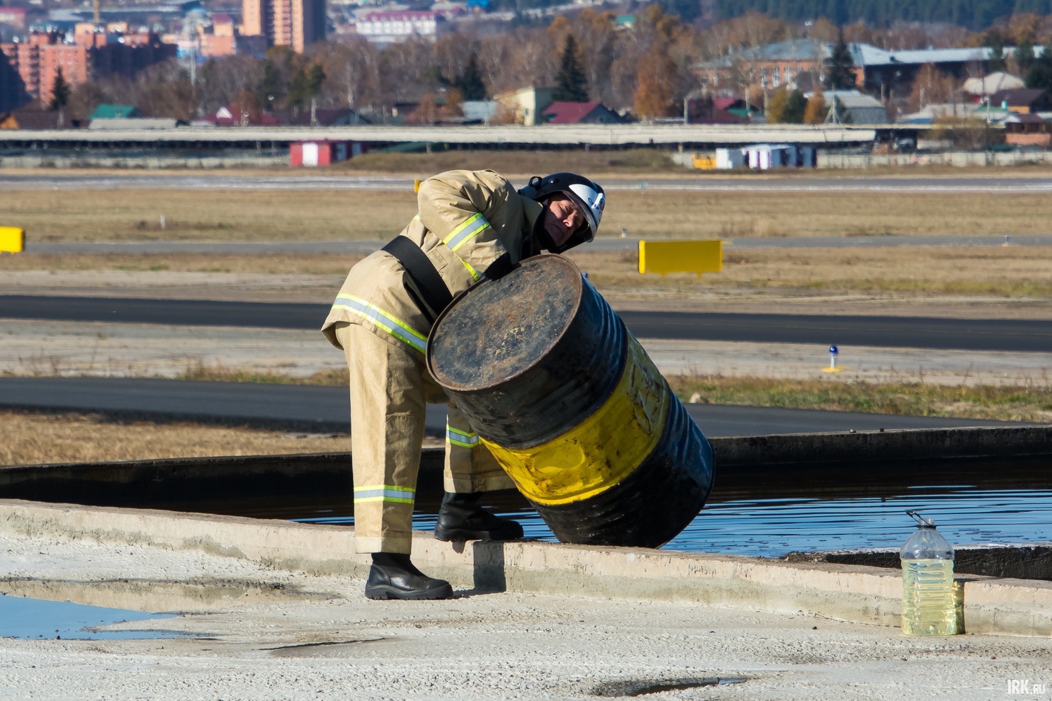 5 октября в международном аэропорту Иркутска прошли пожарно-тактические учения по ликвидации условного пожара на авиатранспорте. По легенде в результате аварийной посадки самолета оторвались шасси и загорелся двигатель. Также пламя охватило разлившееся авиационное топливо. Пострадавшие, роли которых исполнили статисты и манекены, не могли самостоятельно покинуть воздушное судно.