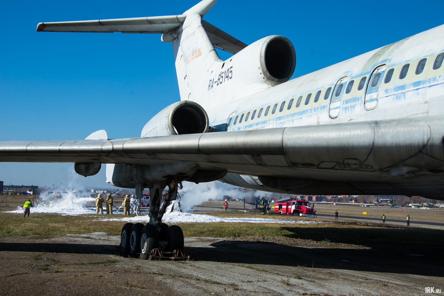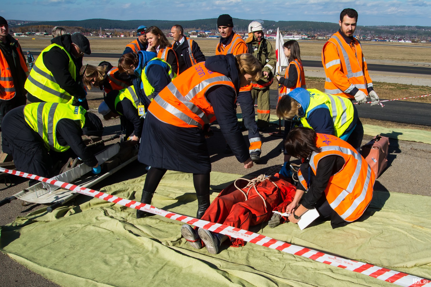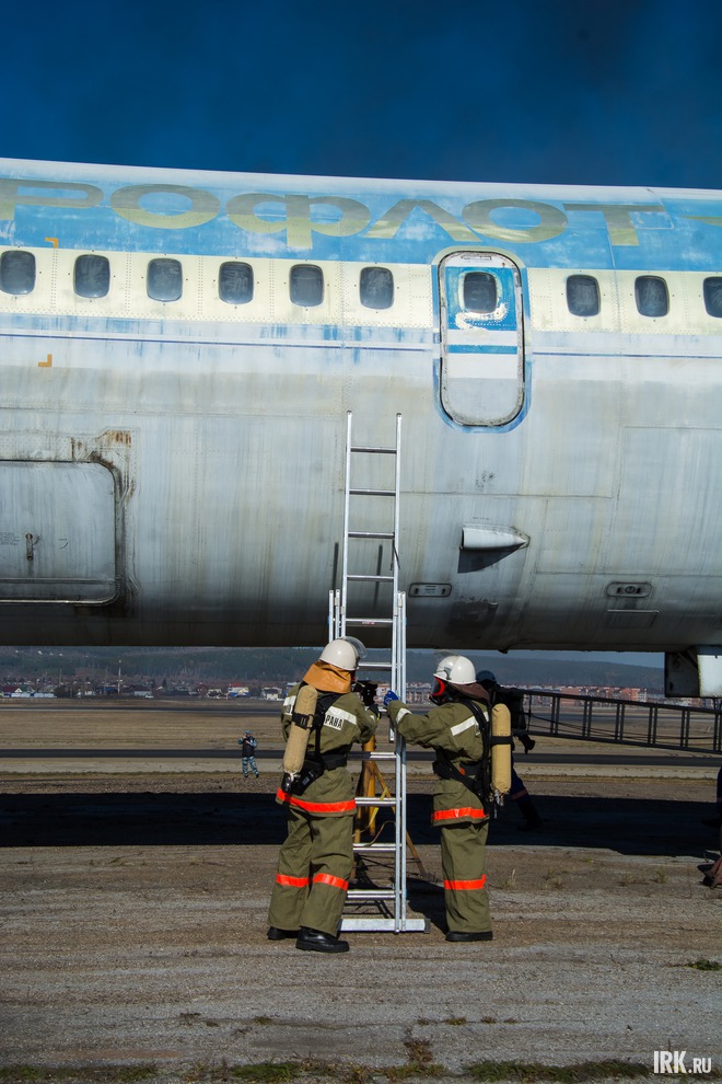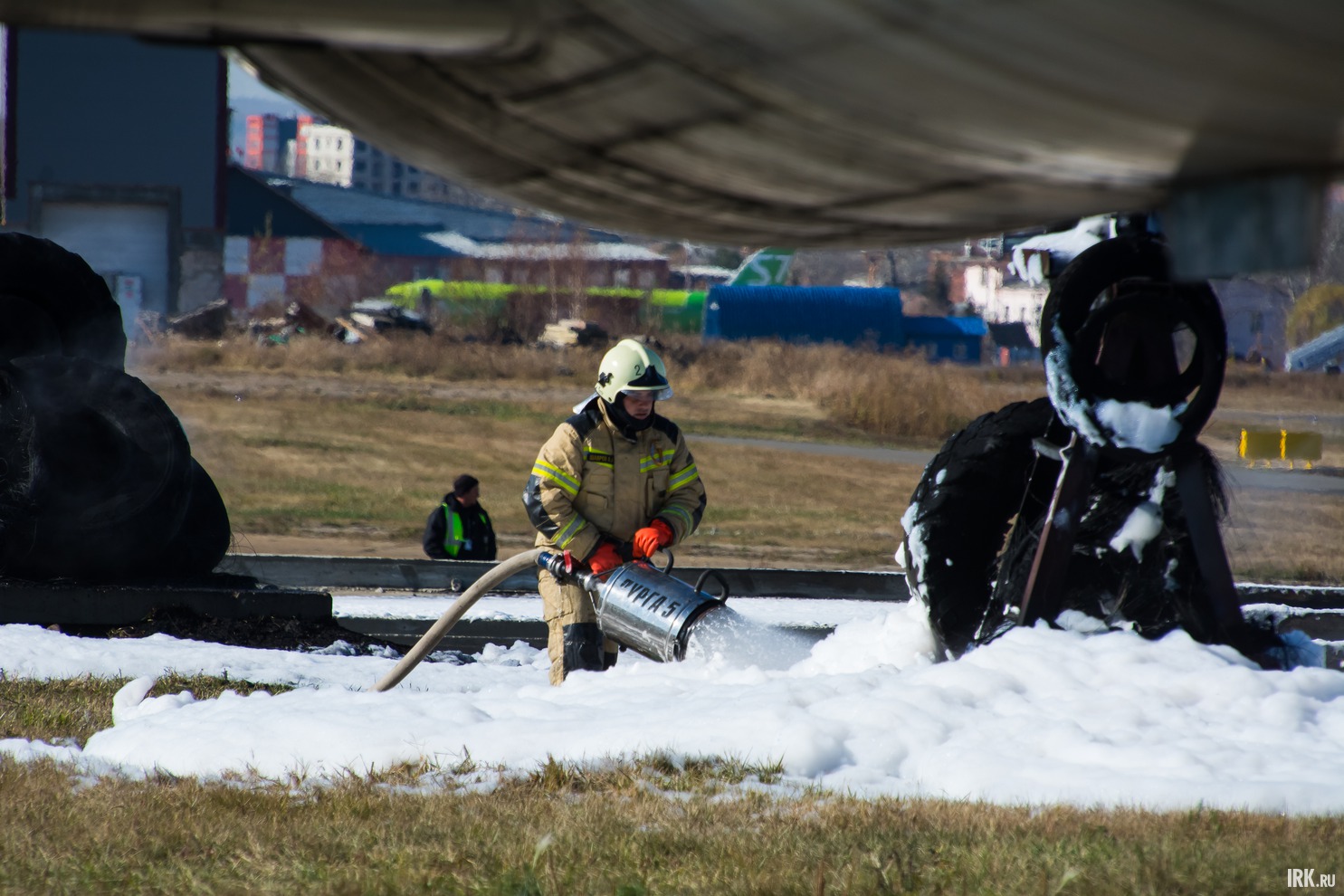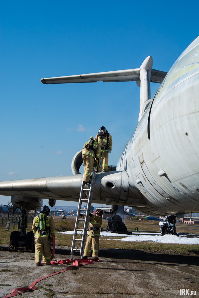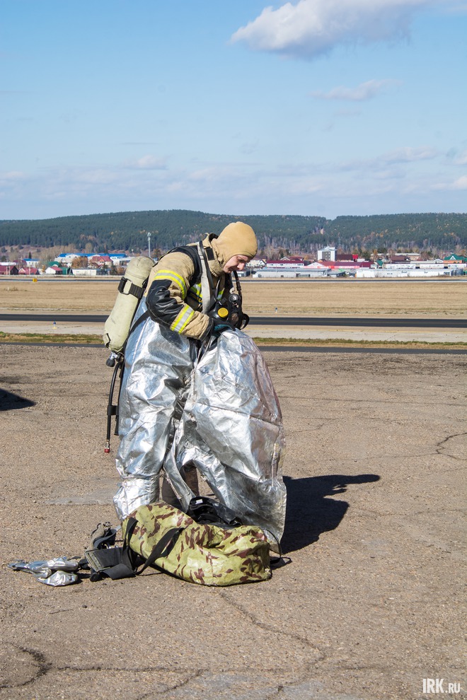 5 октября в международном аэропорту Иркутска прошли пожарно-тактические учения по ликвидации условного пожара на авиатранспорте. По легенде в результате аварийной посадки самолета оторвались шасси и загорелся двигатель. Также пламя охватило разлившееся авиационное топливо. Пострадавшие, роли которых исполнили статисты и манекены, не могли самостоятельно покинуть воздушное судно.