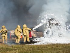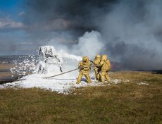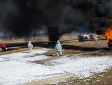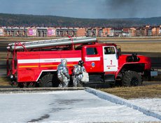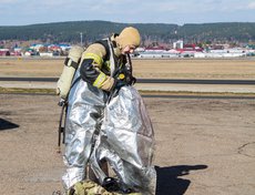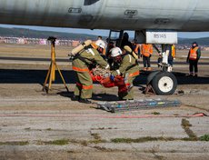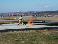 5 октября в международном аэропорту Иркутска прошли пожарно-тактические учения по ликвидации условного пожара на авиатранспорте. По легенде в результате аварийной посадки самолета оторвались шасси и загорелся двигатель. Также пламя охватило разлившееся авиационное топливо. Пострадавшие, роли которых исполнили статисты и манекены, не могли самостоятельно покинуть воздушное судно.