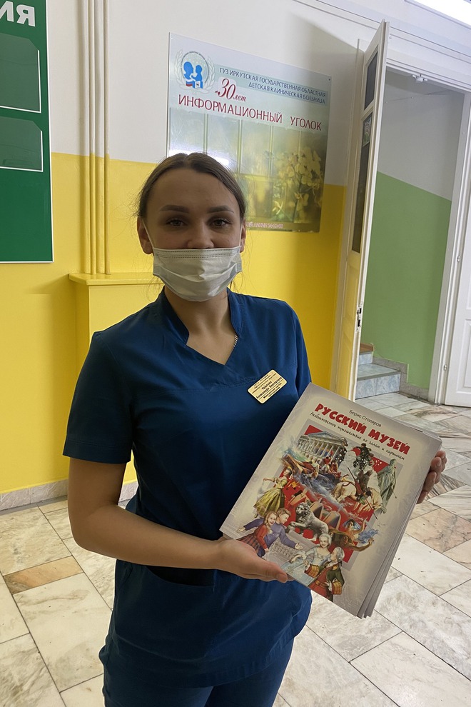 — Выставка «Глаза в глаза» — уникальный проект. Нет способа лучше сделать досуг ребенка интересным, чем занять его творчеством. Готовы предлагать и реализовывать новые идеи в стенах больницы. Так, например, знакомить детей с книгами иркутских поэтов и писателей. А сегодня передаем маленьким пациентам детские книги Русского музея, посвященные великим шедеврам русского искусства".