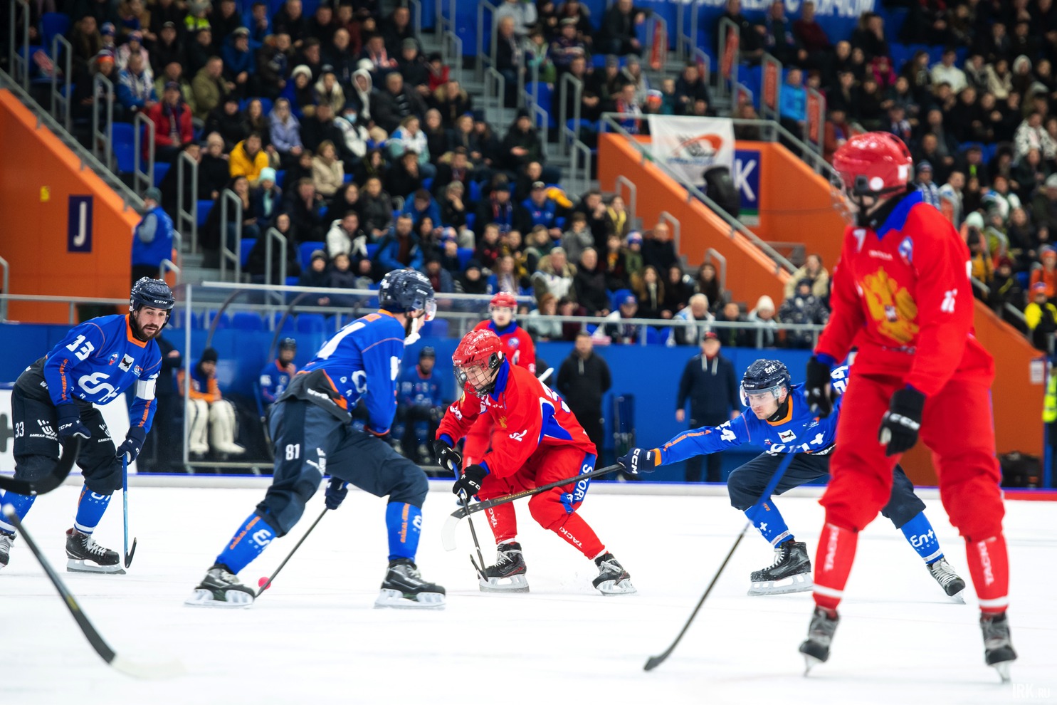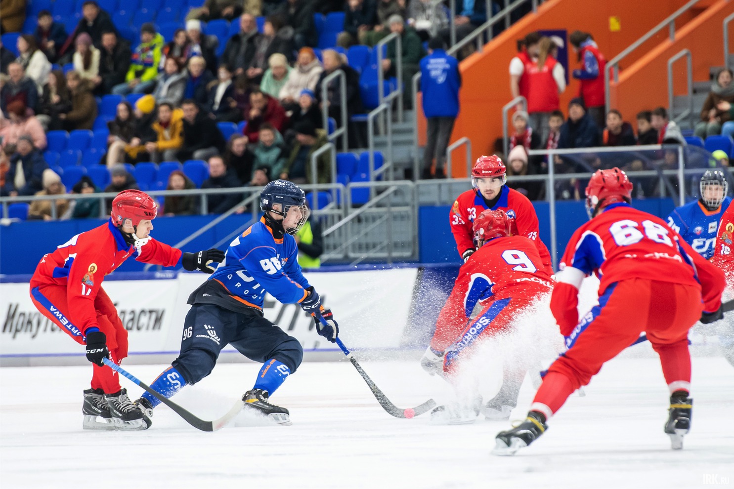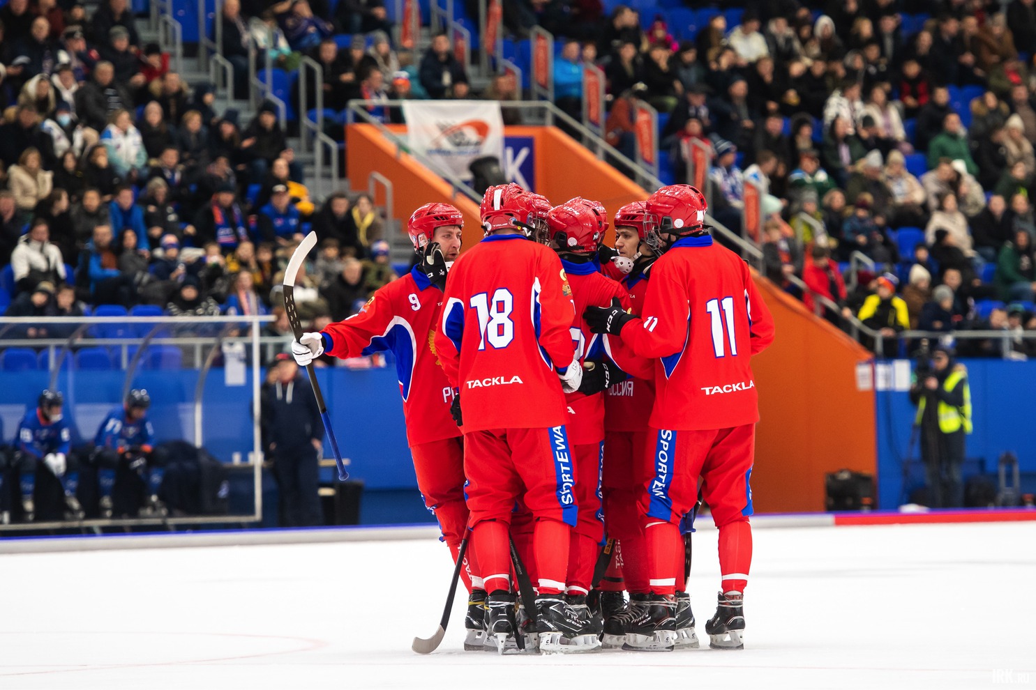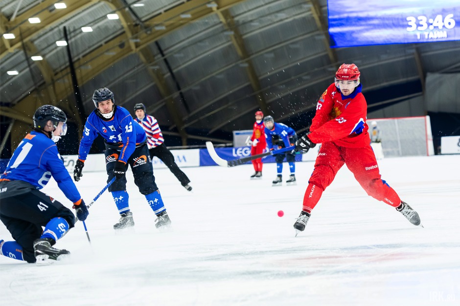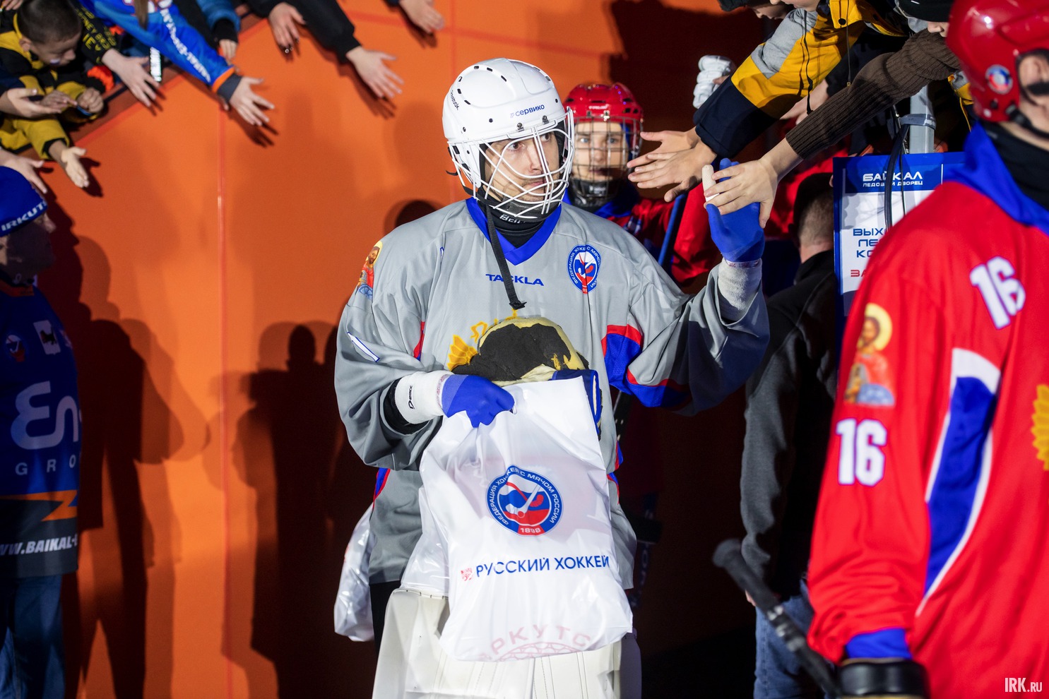 Счёт в игре открыли, как и положено чемпионам мира, хоккеисты сборной России. Алмаз Миргазов спустя 2 минуты после стартового свистка поразил ворота иркутян. На 16 минуте последовал ответ от бело-синих: Максим Семёнов после розыгрыша углового счёт сравнял. Далее игра стала похожа на качели: в составе национальной команды страны отличились Янис Бефус и Владимир Каланчин, а в «Байкал-Энергии» дубль оформил Александр Антипов. На перерыв команды ушли при счете 3:3.