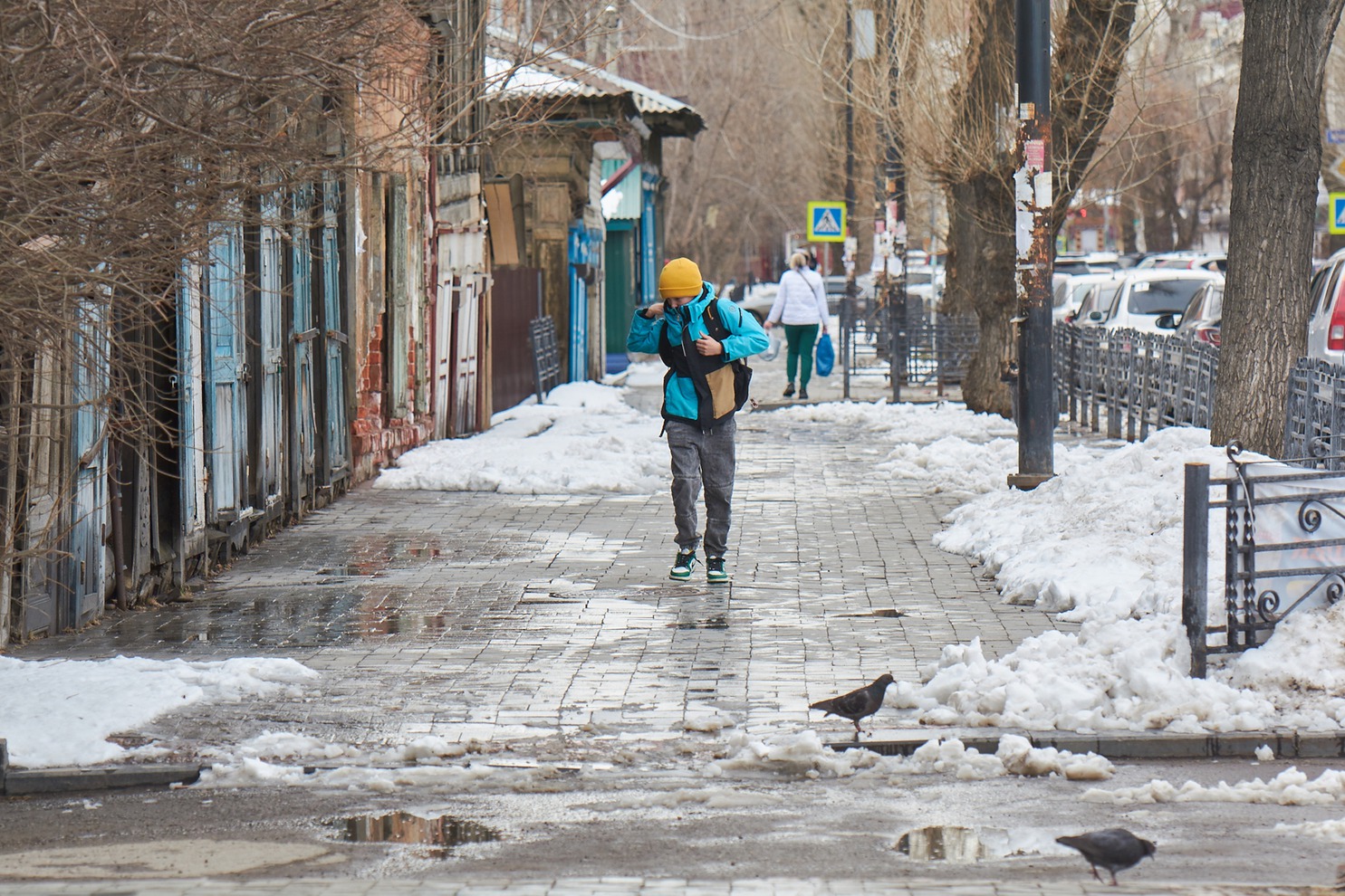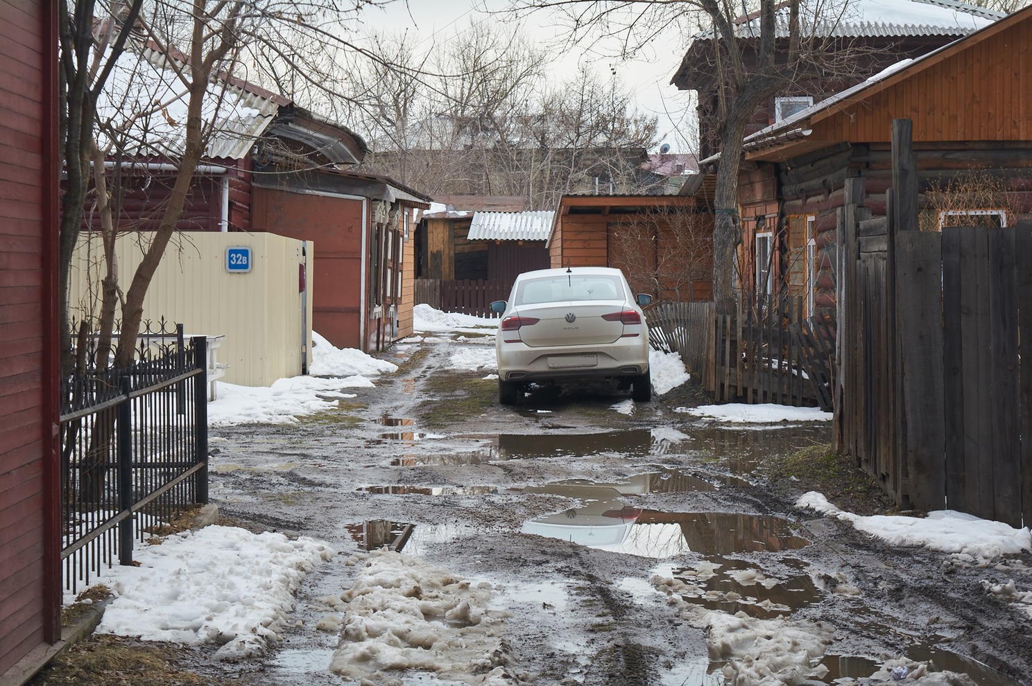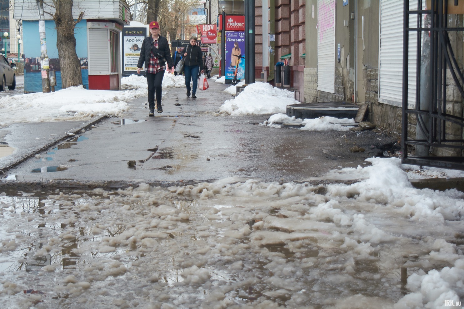 Апрель в Иркутске: грязные сугробы и большие лужи