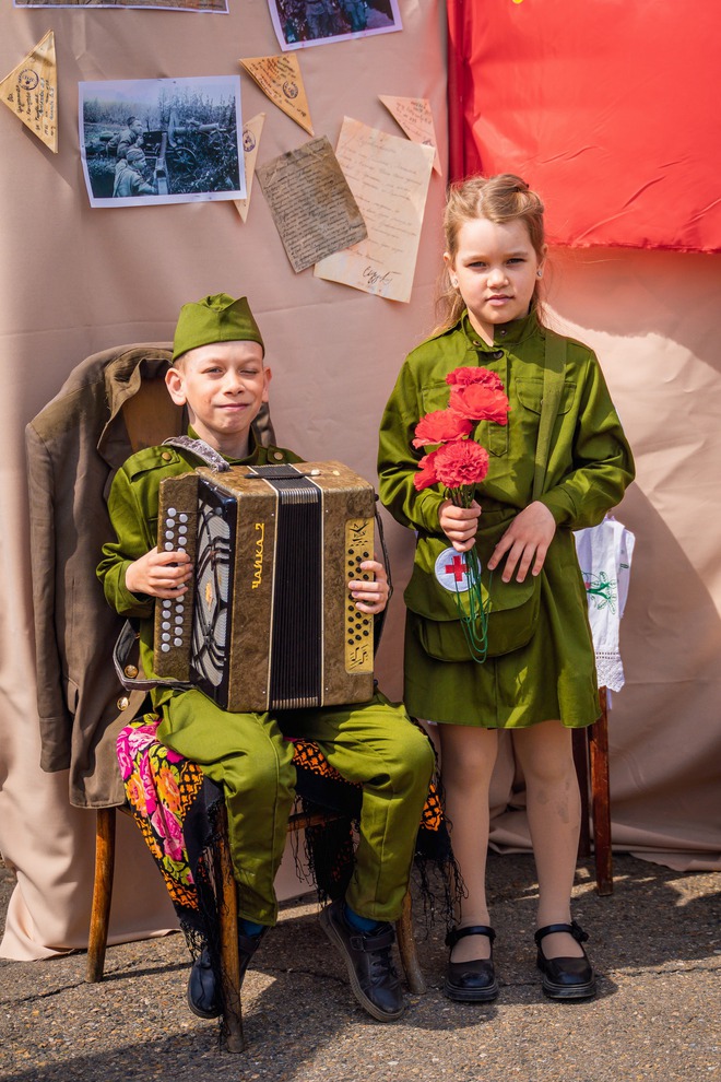 На месте работала полевая кухня, также была подготовлена тематическая фотозона. Праздник завершился традиционной песней «День Победы».