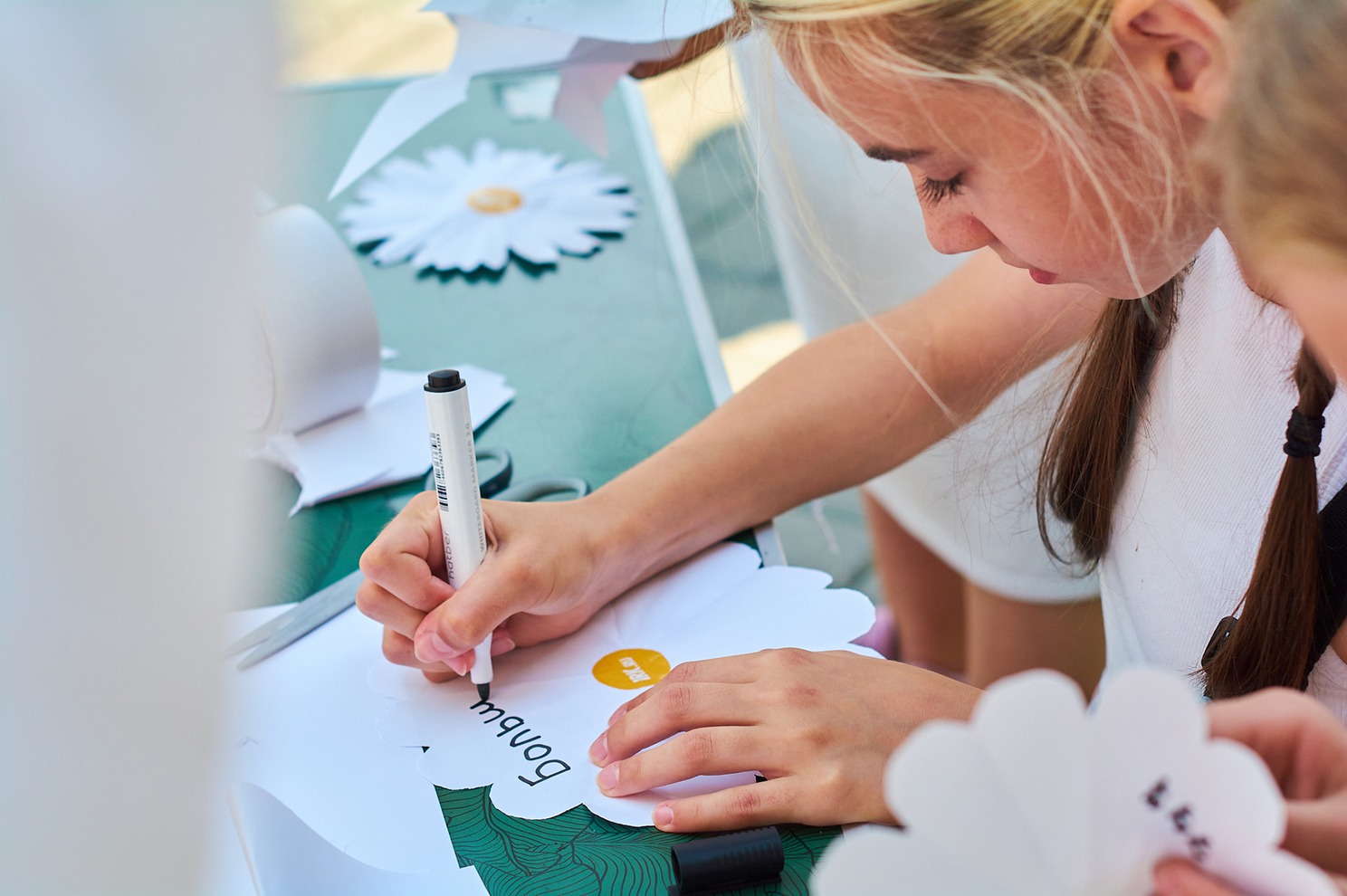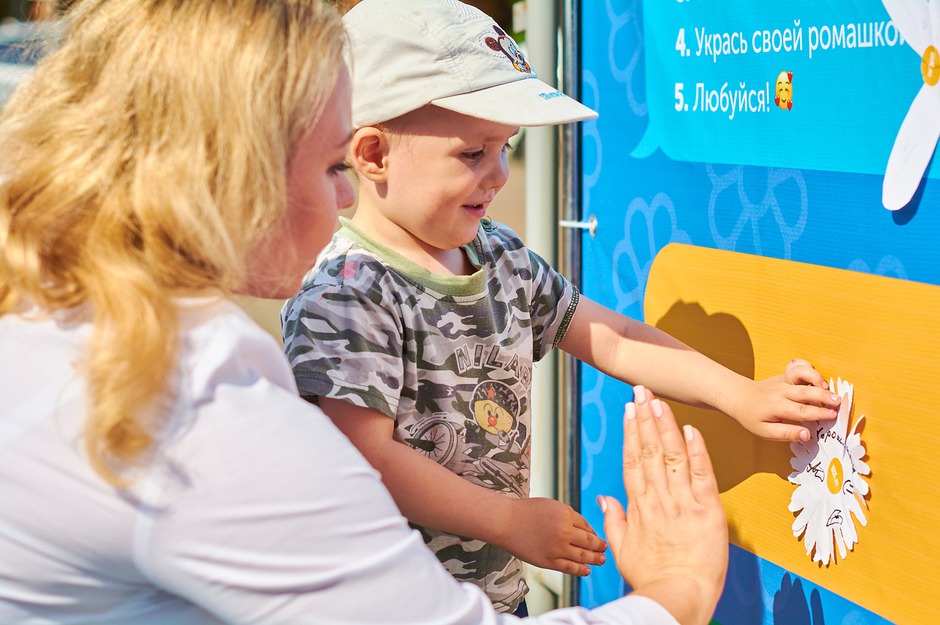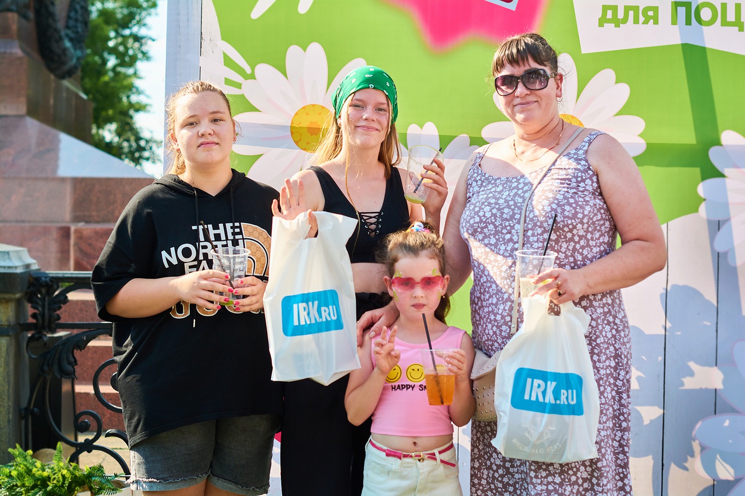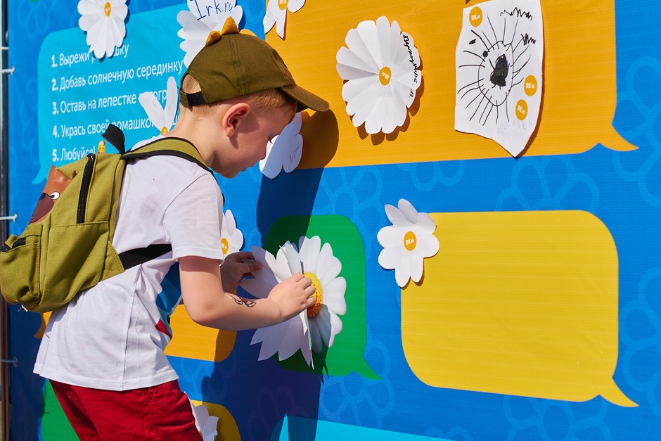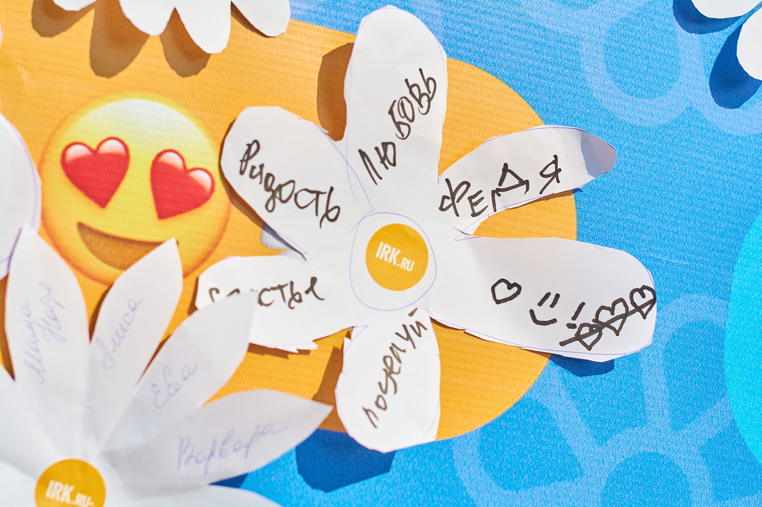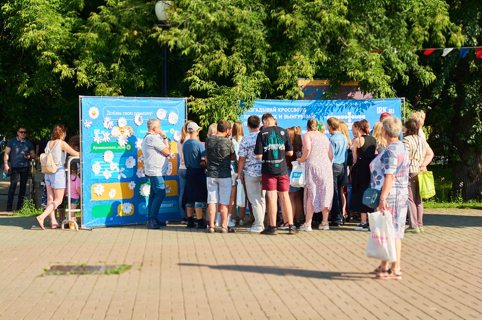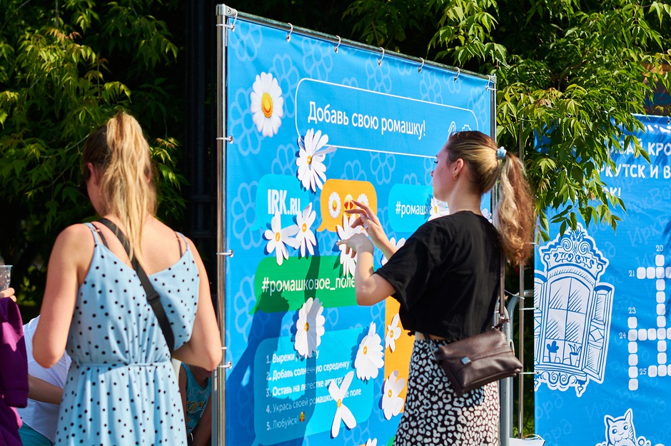 IRK.ru приготовил для гостей две активности — познавательную и творческую. Любители интеллектуальных конкурсов смогли принять участие в разгадывании кроссворда, посвященного истории Иркутска. За каждое разгаданное слово участник получил приз. Была организована и творческая площадка с возможностью создать авторскую ромашку и поместить ее на фотозону. Гости этой площадки с удовольствием вырезали цветы, добавляли в центр солнечную серединку, ставили на лепестках свой автограф, а затем приклеивали получившийся живой смайлик на поле фотозоны. Финальный аккорд — селфи или семейное фото на фоне множества авторских ромашек!