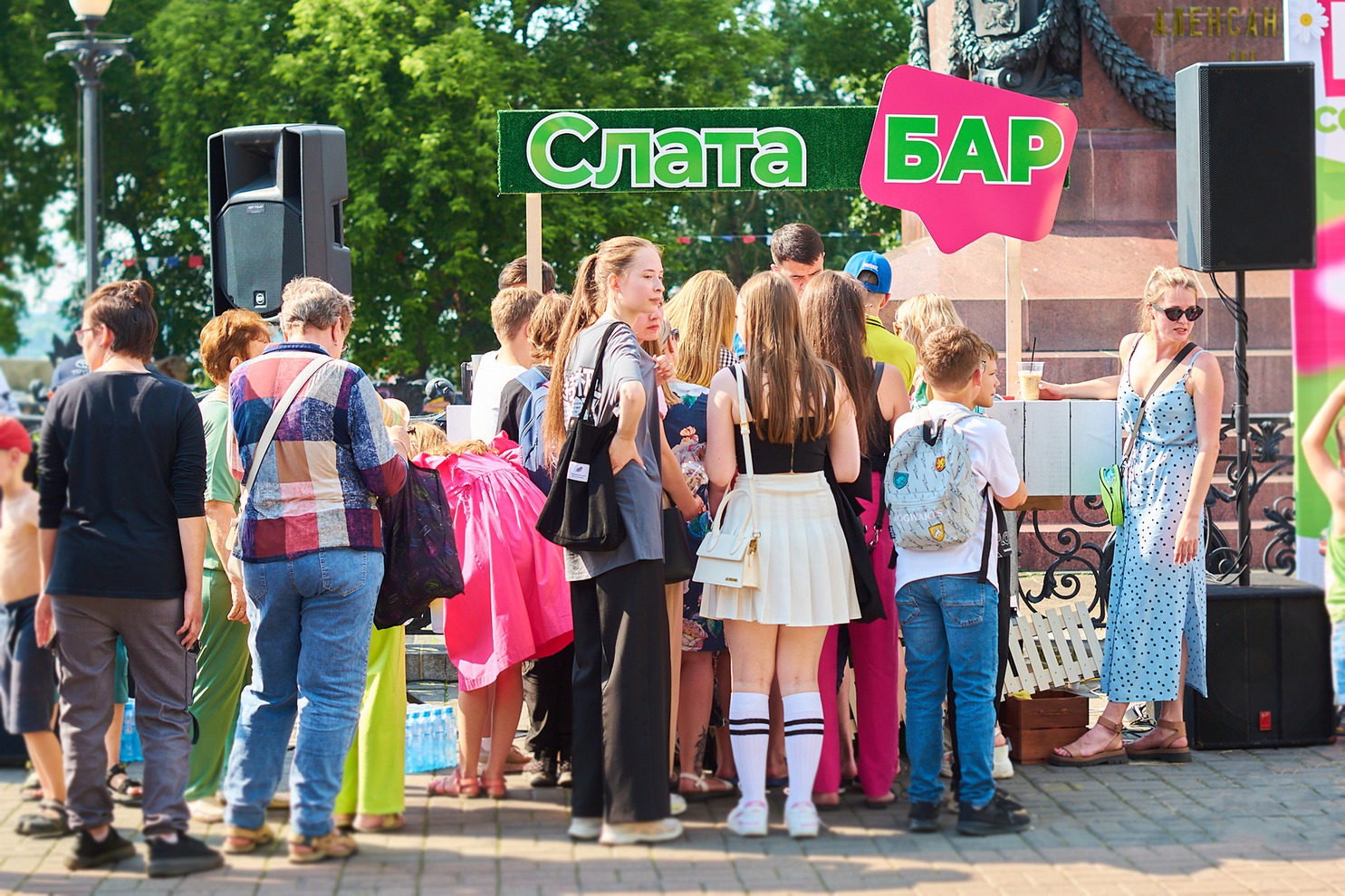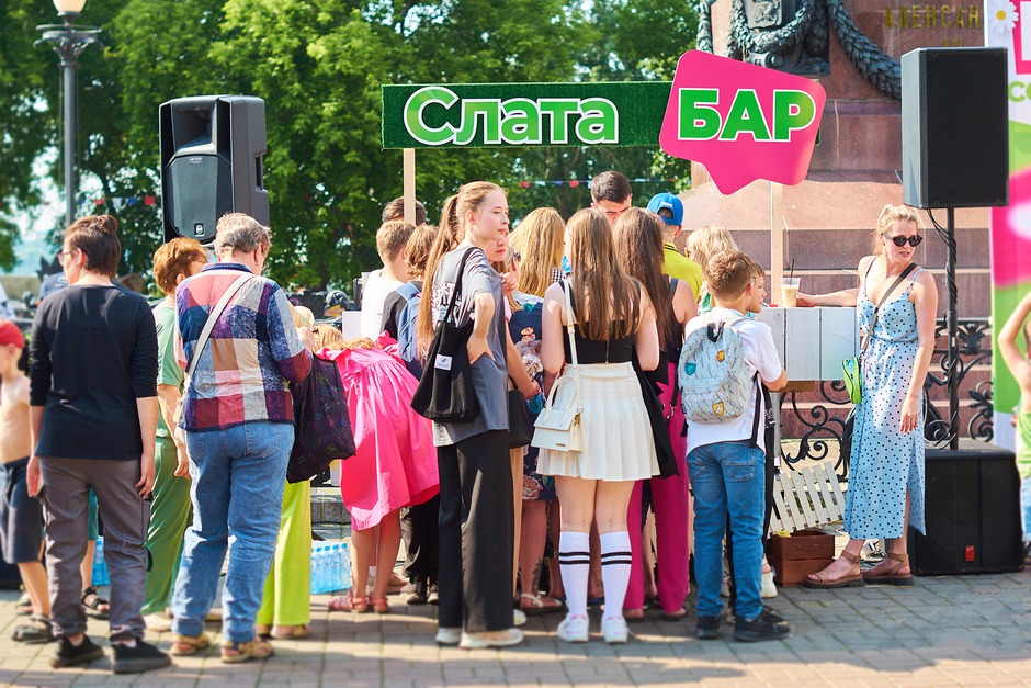 Ну и какой же праздник без прохладительных напитков и вкусного перекуса. Специально на площадке работал «Слата-бар», в котором каждый желающий мог бесплатно угоститься освежающими лимонадами и смузи, отведать фирменные блинчики и попробовать бургеры из новой линейки. Собственное производства «Слаты» приготовило фреш-бургеры, файт-бургеры, фла-бургеры, френд-бургеры, файв-бургеры, а еще лог-бургеры, лабл-бургеры, зож-бургеры, а из новинок мексиканской кухни - бонито-роллы, федерико-роллы в лаваше.