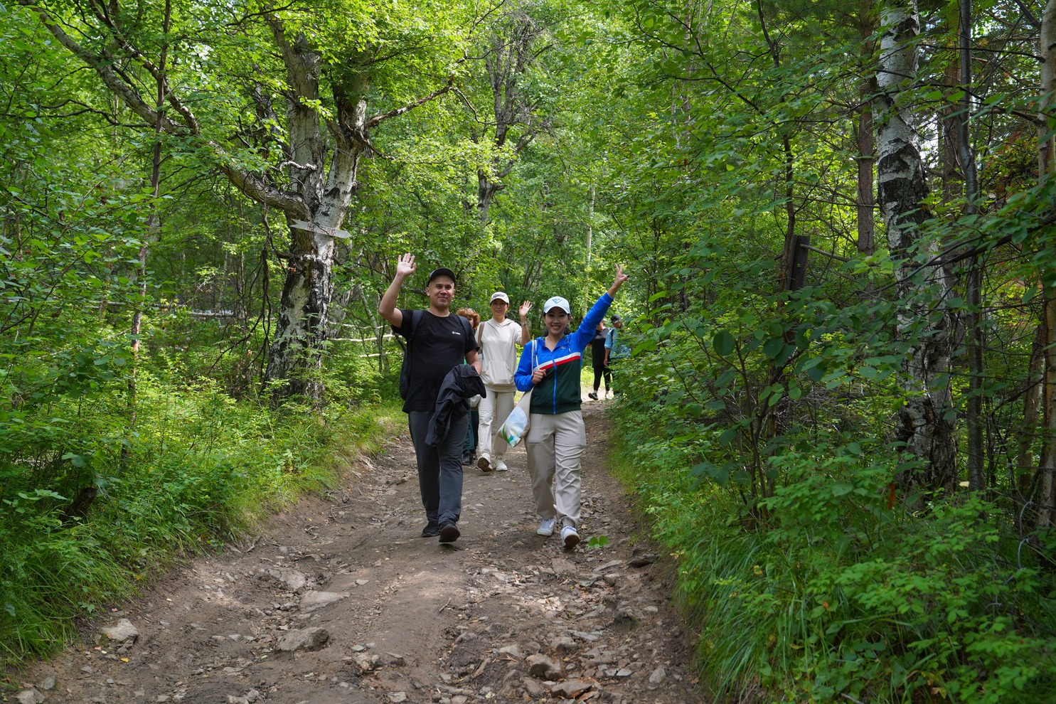 Программа форума не ограничилась только дискуссиями. Во второй день форума 100 волонтёров из Иркутска, Якутска, Братска и Читы отправились в Порт Байкал. Там, в Прибайкальском национальном парке, прокладывают новый туристический маршрут «Исток Ангары». Волонтерский десант взял на себя задачу установить информационные стенды, навигационные указатели, парковую зону и скамью на живописной обзорной скале. Сделано! Открытие эко-тропы для туристов намечено на сентябрь, в День Байкала.