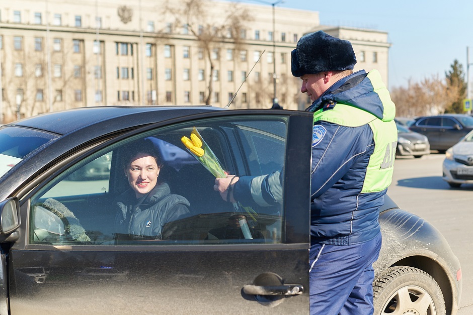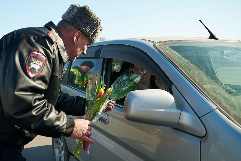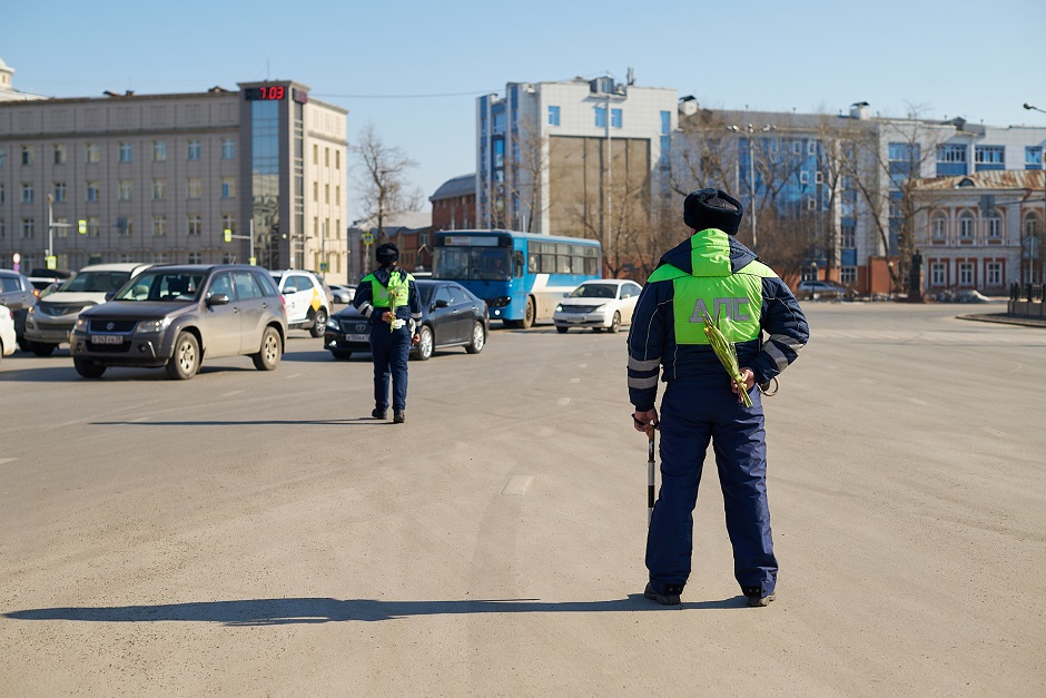 Сотрудники Госавтоинспекции поздравили иркутянок с 8 Марта