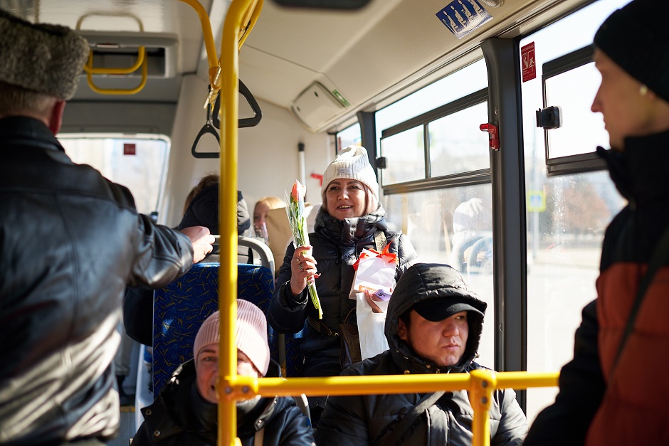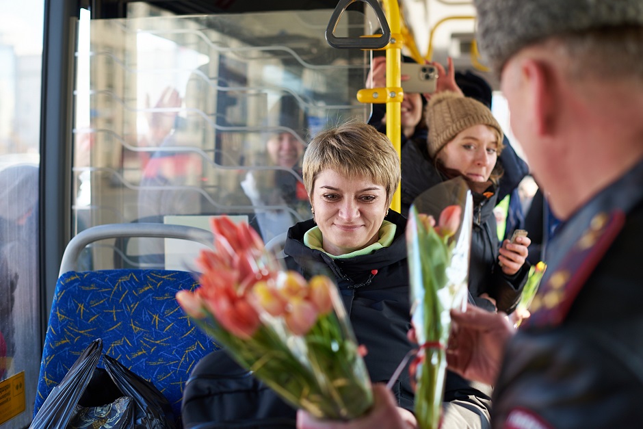 Не оставили без внимания и пассажирок автобусов. Иркутянки были очень удивлены появлением сотрудников полиции в салоне, но с радостью приняли поздравления. Всем женщинам достались букеты и подарки от партнеров акции, а они в ответ похвалили госавтоинспекторов за такую инициативу и поднятое настроение.