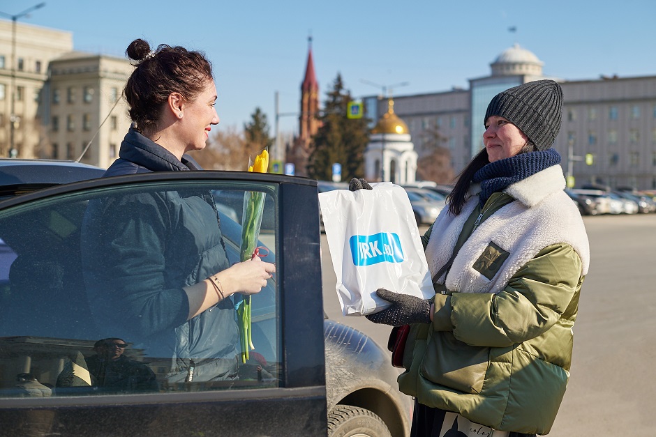 Поздравил жительниц города и информационный портал IRK.ru. Сайт участвует в акции не первый год. На 23 февраля мы также вручили подарки иркутским автомобилистам.