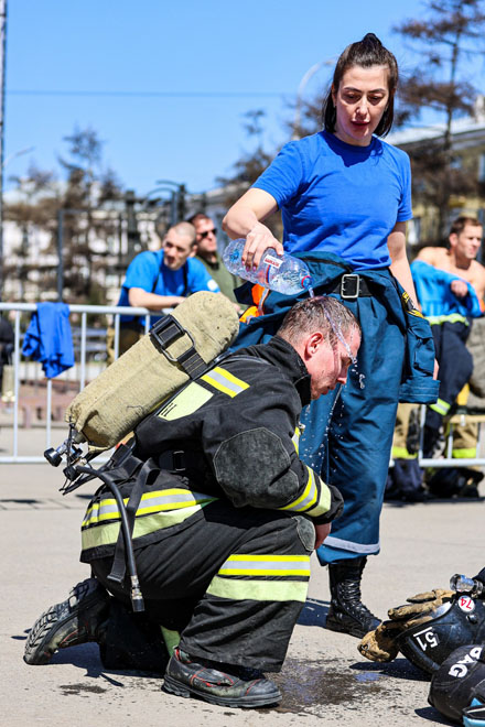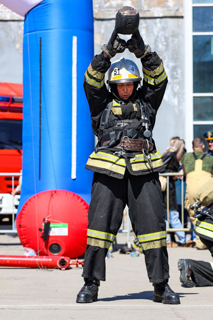 При этом участники выполняют задачи в полном боевом облачении весом свыше 25 килограммов. Нагрузки во время соревнований аналогичны тем, какие приходится преодолевать в условиях реальных пожаров.