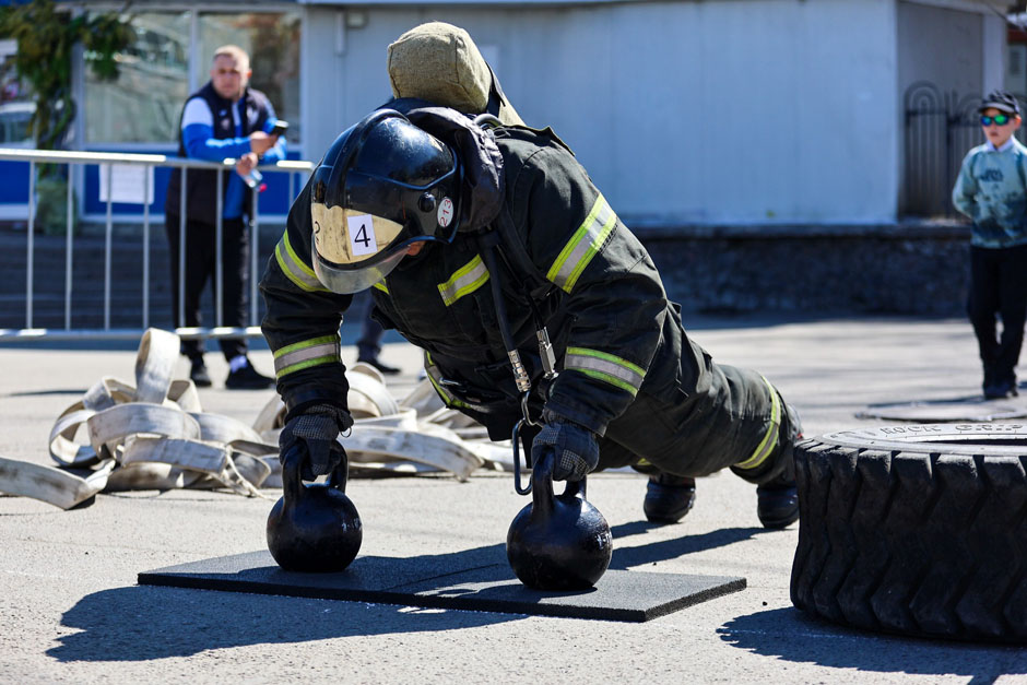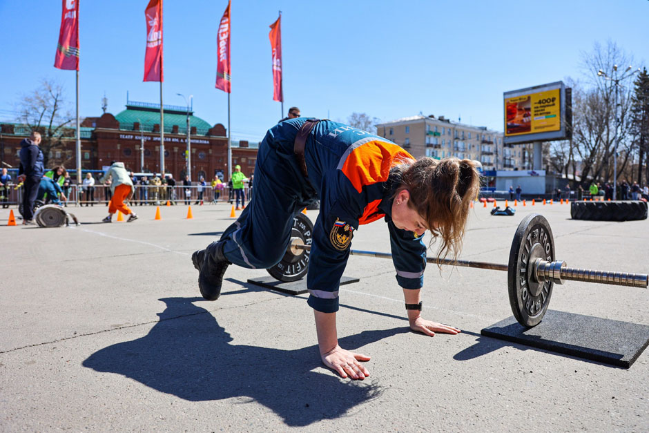 Десять лет назад иркутские пожарные представили программу соревнований в стиле «кроссфит». Этот формат подразумевает серию непрерывных силовых упражнений с различным инвентарем: чугунными гирями весом 24 килограмма, 30-килограммовыми штангами, 40-метровыми пожарными рукавами, 70-килограммовыми манекенами с песком, сэндбэгами, покрышками трактора «Беларусь», трехтонными внедорожниками УАЗ «Патриот».