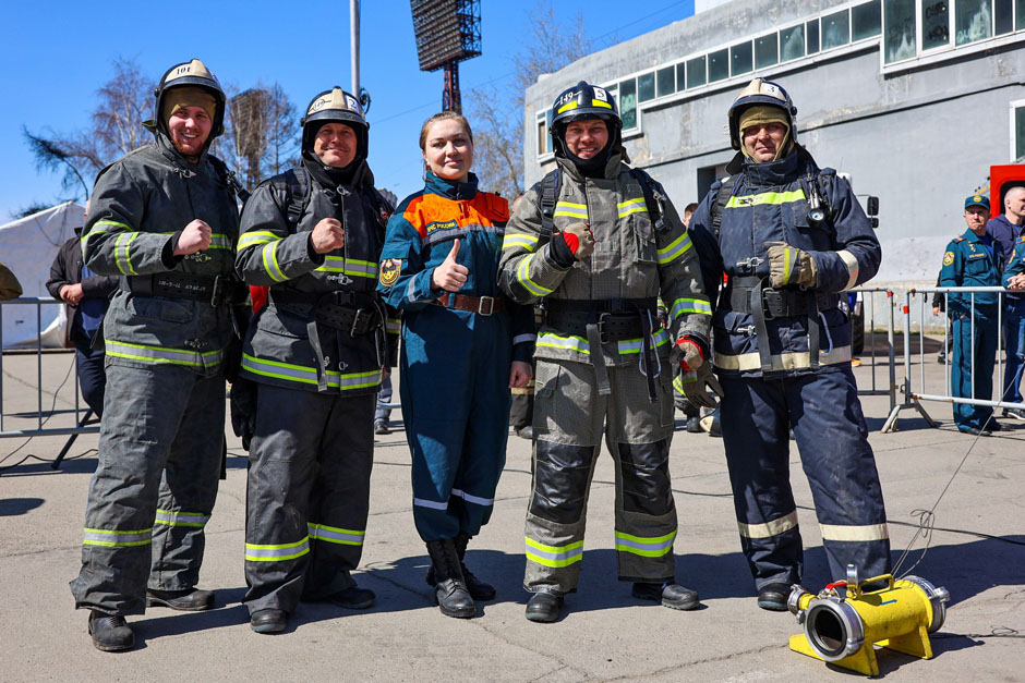 Перед дворцом спорта «Труд» в Иркутске прошли соревнования по пожарно-спасательному многоборью
