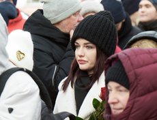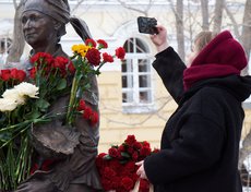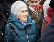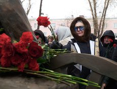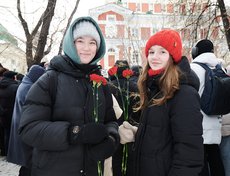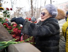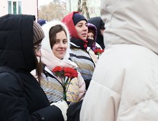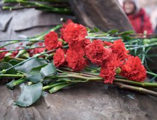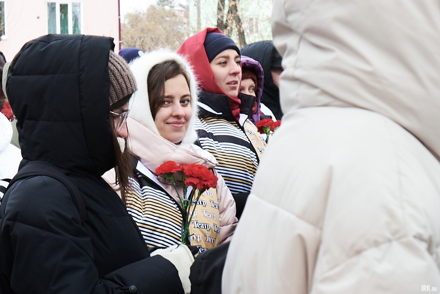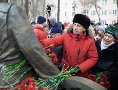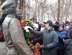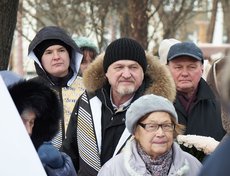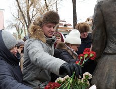 Собравшимся показали запись фрагмента спектакля «Поминальная молитва» – сцену с подсолнухом. В завершении пришедшие возложили к памятнику цветы.
