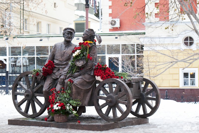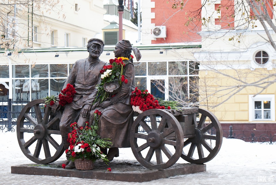 Скульптурная композиция представляет собой сцену из спектакля «Поминальная молитва». Актёры изображены в образах молочника Тевье и его жены Голды. Пьесу Григория Горина иркутский зритель впервые увидел в драмтеатре 27 лет назад — премьера состоялась 2 июня 1998 года.
