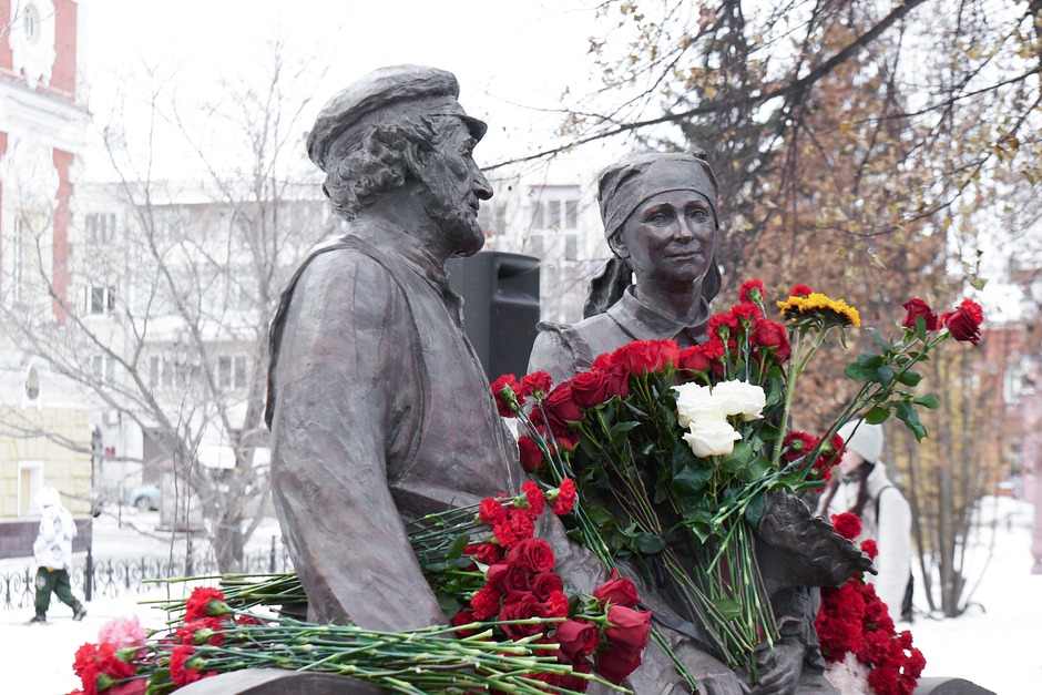 Около драмтеатра открыли памятник Виталию Венгеру и Наталье Королёвой